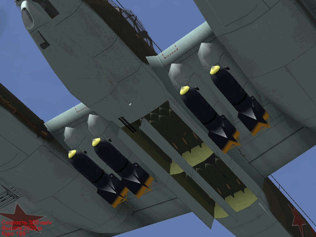 fix 21.12.2011 www.nullwar.com/ftp/test/ju88a13fix.7z удалить 2EEA0DBE58C68F76 19.12.2011 ver. 0.99 www.nullwar.com/ftp/test/ju88a13.7z Ju 88A-4 Исправление от 28 ноября 2010 Еще точнее подогнан взлетный весм. Включены airbrake. Исправлена ошибка мотора Ju 211J http://www.nullwar.com/ftp/test/Ju88_fix_28112010.rar Версия 0.82 Прикручена нормальная модель повреждений. Крыло теперь не просто прямоугольник - пострелял и оно отвалилось, там есть 2 лонжерона, баки, тяги элеронов..., двигатели это тоже не кубик - у них есть картер, цилиндры, редуктор, и т.д., у пилота бронекресло, все примерно как у Не-111, собственно на его основе и сделано. Супер убером самолет не стал, но и уж совсем картонным перестал быть. Стреляют оба задних пулемета, потому что. Нестрелявшим ранее стреляет нижний стрелок. Добавлены боковые МГ-15, правым стреляет штурман-бомбардир, левым стрелок-радиооператор. В общем что-то будет стрелять, пока не погибнут все 3 стрелка. Сделать чтобы стреляли все пулеметы пока есть кто-то живой можно, но сильно геморойно, поэтому пока четко прописано - кто из чего стреляет и в случае гибели стрелка "приписанный" ему ствол стрелять перестанет. Бомбовое вооружение согласно оригинальному немецкому документу от июля 41. Там конечно вариантов побольше, более 30, но для Ил-2 и тех что сделаны более чем. 250 кг под консолями есть, а то что реально их не применяли, или скорее просто нет об этом упоминаний, фактор маловолнующий. Сделан и задействован для бомб, по необходимости, передний бомбоотсек. Бомбы из обеих внутренних отсеков кидаются по-одиночке, но учитывая что в реале было на 28 бомб только 24 сброса, то сделаны 4 парных сброса (8,9,15,16), как положено по документу. По-одиночке кидаются и бомбы из под центроплана. Консольные 250 кг только парой. Ju-88A-4_Late.28xSC50 28xSC 50, shot range 1260 km Ju-88A-4_Late.28xSC50_6xSC250 28xSC 50 + 6xSC 250 Ju-88A-4_Late.2xSC500_2xSC1000 2xSC 500 + 2xSC 1000 Ju-88A-4_Late.10xSC50_4xSC250 10xSC 50 + 4xSC 250, midle range 2340 km Ju-88A-4_Late.10xSC50_6xSC250 10xSC 50 + 6xSC 250 Ju-88A-4_Late.28xSC50_2xSC500_1xtank 28xSC 50 + 2xSC 500 + 1x 900 l tank Ju-88A-4_Late.6xSC250 6xSC 250 Ju-88A-4_Late.4xSC500 4xSC 500 Ju-88A-4_Late.4xSD500 4xSD 500 Ju-88A-4_Late.2xSC1000 2xSC 1000 Ju-88A-4_Late.1xSC1800 1xSC 1800 Ju-88A-4_Late.1xPC1600 1xPC 1600 Ju-88A-4_Late.4xSC250 4xSC 250, long range 2900 km Ju-88A-4_Late.2xSC500 2xSC 500 Ju-88A-4_Late.2xSD500 2xSD 500 Ju-88A-4_Late.1xSC1000 1xSC 1000 Ju-88A-4_Late.10xSC50_1xSC500_1xtank 10xSC 50 + 1xSC 500 + 1x 900 l tank Ju-88A-4_Late.10xSC50_1xSC1000_1xtank 10xSC 50 + 1xSC 1000 + 1x 900 l tank Ju-88A-4_Late.28xSC50_2xtank 28xSC 50 + 2x 900 l tanks Ju-88A-4_Late.1xSC500_1xtank 1xSC 500 + 1x 900 l tank, max range 3680 km Ju-88A-4_Late.10xParaFlare_2xtank 10x ParaFlare + 2x 900 l tanks Загрузка топлива то же соответственно этому же документу. А не неизвестно откуда взятые 1344 кг, к стати похоже с А-20. 3 варианта: 1220, 2100 и 2600 кг (максимальная внутренняя заправка - крыльевые баки + 2 бака в 2-х бомбоотсеках, разумеется если беруться 50 кг, то при 10 можно поставить только в пердний отсек и получить максимум 2100 кг, если все 28, то только крыльевые баки с 1220 кг, можно взять и 900 л подвесные баки, если взлетный вес укладывается в 14 т, подвесные баки Ил-2 считает отдельно), в зависимости от бомбовой загрузки, чтобы вписаться в 14000 кг взлетного веса, т.е. достижения максимальной дальности: берем больше бомб - получаем минимальную дальность, меньше бомб -максимальную, поумолчанию для 100%, или на выбор. 25-50-75-100% топлива теперь работают так: Для 2600 кг топлива на 25-50% "прикручено" 1220 кг, на 75% - 2100 кг, для 2100 кг на 25-50-75% - 1220 кг. В консоли можно посмотреть что получается Shift+Tab Разумеется есть ракетный ускоритель, пока для взлетной массы более 13000 кг. МГФФ у пилота будет на А-13 и А-14. Пока не сделана текстура для створок переднего бомбоотсека. http://www.nullwar.com/ftp/test/Ju-88_18092010.rar Вооружение, без к