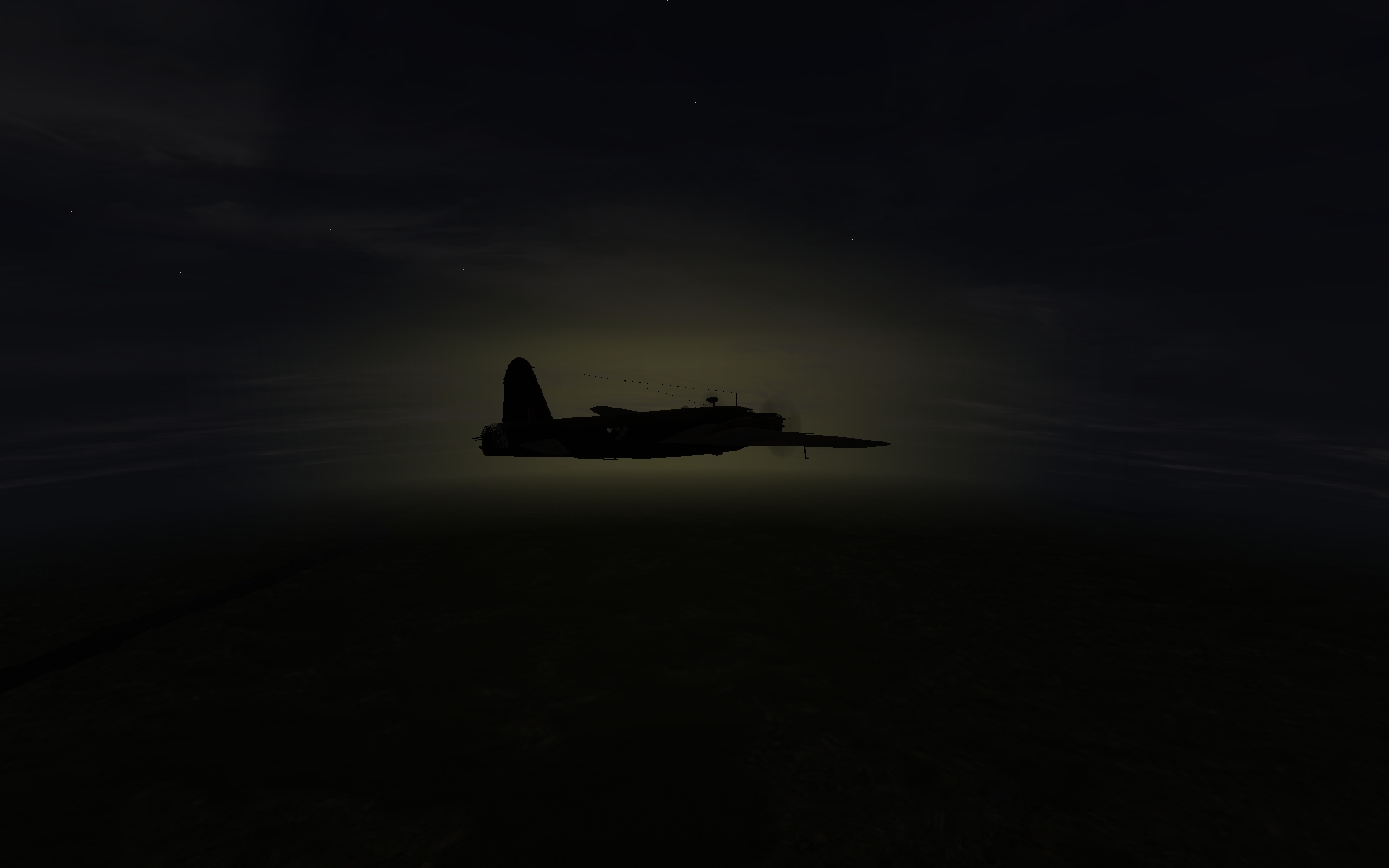 После сброса бомб немедленно выполняем противозенитный маневр, и убираемся отсюда. Следует заметить, что ПВО рейха оказалось неготово к отражению постоянных ночных налетов. Собственно, фрицы думали, что только они смогут всех бомбить. Поэтому в 1940 зенитное противодействие было откровенно слабым. Однако наш налет тоже оказался слабо организован - взлетели в час ночи, поэтому при возвращении, где-то над серединой Германии ВНЕЗАПНО начался рассвет. Зрелище красивое, но для экипажа ночного бомбардировщика неприятное.