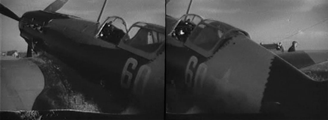 Прикольный «зубчатый» камуфляж на борту Мигаря. Скрины из Х/Ф «Небо Москвы» Мосфильм 1944г. Скорее всего оставшиеся машины ПВО Москвы 44год. Видел подобный на СБ и Чайке, на Миге не припомню.
