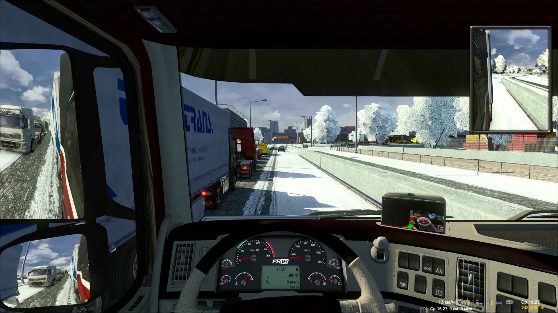 Не на самом деле конечно, и не во сне, а в симуляторе Euro Truck Simulator 2. Довольно неплохая игрушка, особенно с модами. Под новый год, поставил себе зимний мод до кучи.
