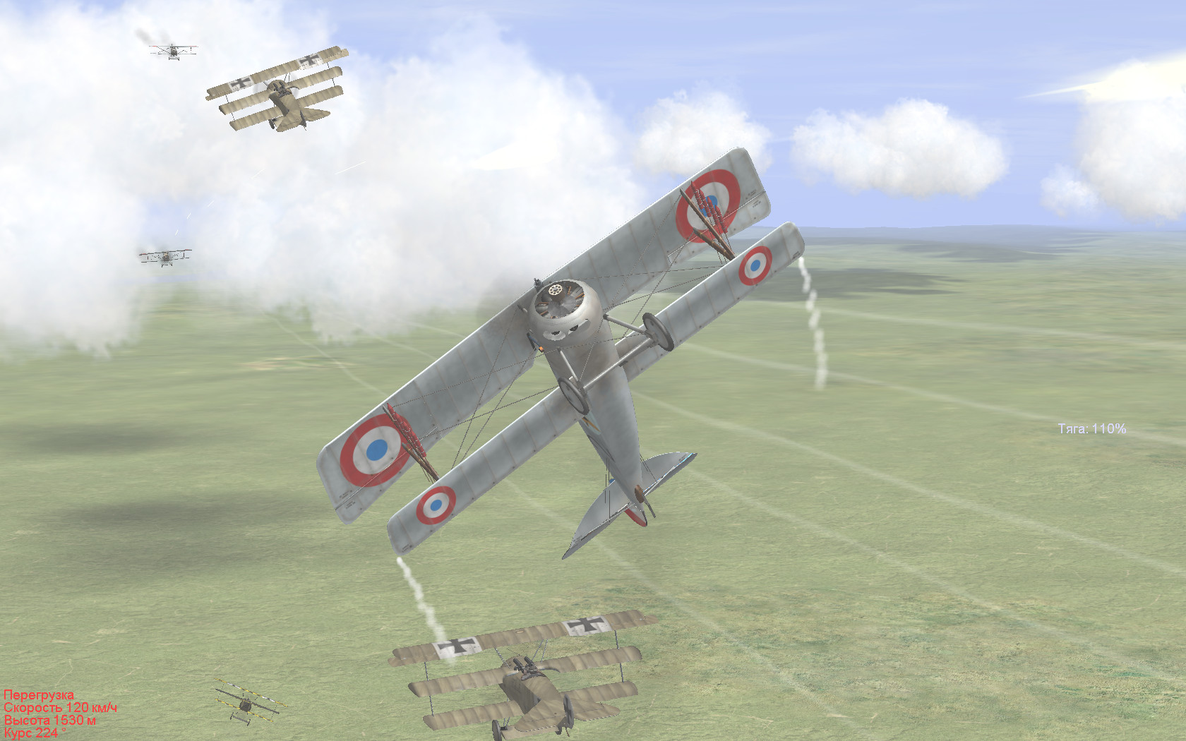 при реском маневре у Ньюпоров-24/27. что то со страшным грохотом ломается и после этого машину тянет сильно в право. да и со скоростью беда и машину трясет. впрочем в жизни на крутом вираже у Ньюпоров-11_27 и Альбатросов Д1-5 из-за скручивания нижней плоскости иногда происходили поломки в виде отрыва нижней плоскости, либо ее разрушения. дефект был в конструкции Ньюпора, а фрицы при копировании полуторной схемы ее тоже перенесли на Альбатрос Д.
