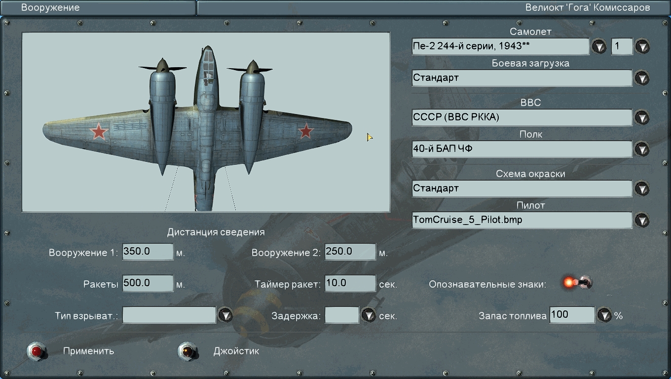 Что добавлено - основные карты, модные объекты и корабли, модная техника, модные самолеты WWII. В планах - расширение JetEra (реактивные самолеты), расширение WWI, визуальные моды. Что уникально - переведены все сообщения всех используемых модов на русский язык, все модные бомбардировщики имеют бомбовые прицелы из 4.13, максимально добавлены открывающиеся фонари (даже на Ju-87D, Ki-84), добавлены новые кабины (например у москито теперь есть место бомбардира). Для динамических кампаний готовы все данные посвмолетам и вооружению, сейчас завершаем подготовку файла по сквадам (спасибо Моторхеду). Очень надеюсь что авторы кампаний адаптируют свои работы под сборку, а я помогу с переходом на новые версии. :-) |