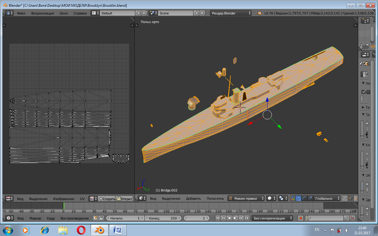 Мне всегда хотелось создать такой крейсер. Наш уважаемый форумчанин, камрад jabo любезно согласился передать мне его 3d модель Бруклина. Этот крейсер относящийся к первым семи кораблям серии, (последние два имеют серьёзные отличия по внешнему виду и вооружению) по состоянию на конец 1942г. Есть некоторые проблемы связанные с текстурированием и составом вооружения, но в общем всё преодолимо. Возможно информация изложенная в этой теме, поможет кому то в будущем создать свой корабль. Всем мира. Последний раз редактировалось tvister; 11.03.2017 в 11:18. |