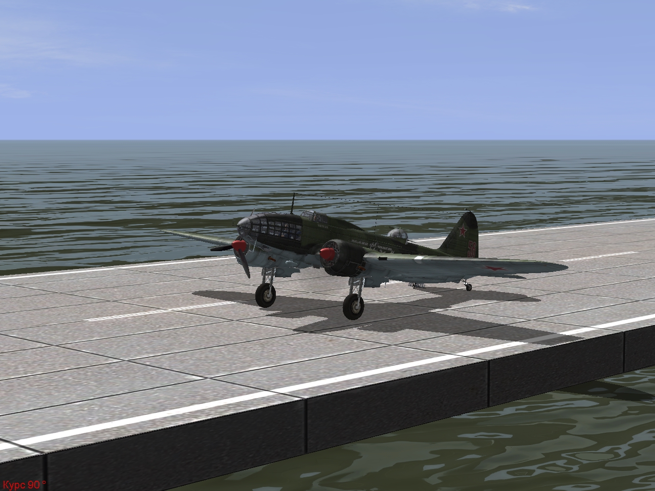 Надо было в точке взлета поставить самолету игрока целеуказание на тестовую ВПП №1. Без целеуказания - взрыв на самом старте миссии. С целеуказанием - штатный взлет.Правда тут вырисовался досадный нюанс: если на дефолтной ВПП№1 стартующий самолет генерится штатно, то при ее замещении на создаваемую льдину, тот же самолет генерится висящим в воздухе сбоку от нее. См. скриншоты.
