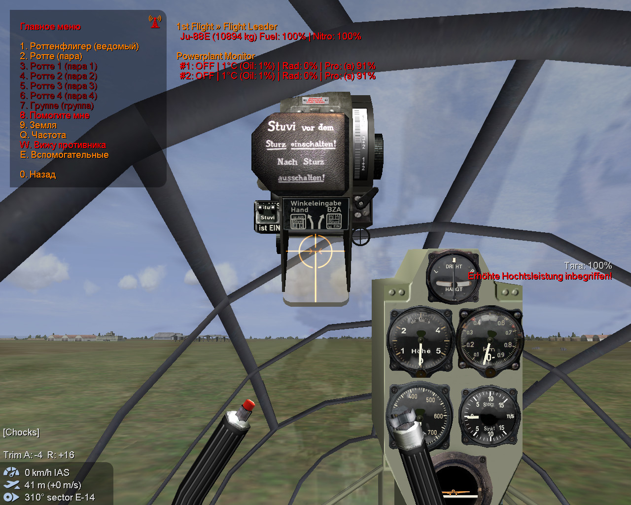 На высоте в 1000 на форсаже разогнал до 461 км/ч. Но что обратило внимание - несмотря на применение форсажного режима (как я понимаю красную надпись на мониторе на немецком) - расход nitro не проявился. Так и должно быть? Сам аппарат интересный. Не уверен в его сегодняшней бомбовой нагрузке. Есть огрехи в текстурах - коки винтов как-то не так. Но это ж еще и не окончательный? |