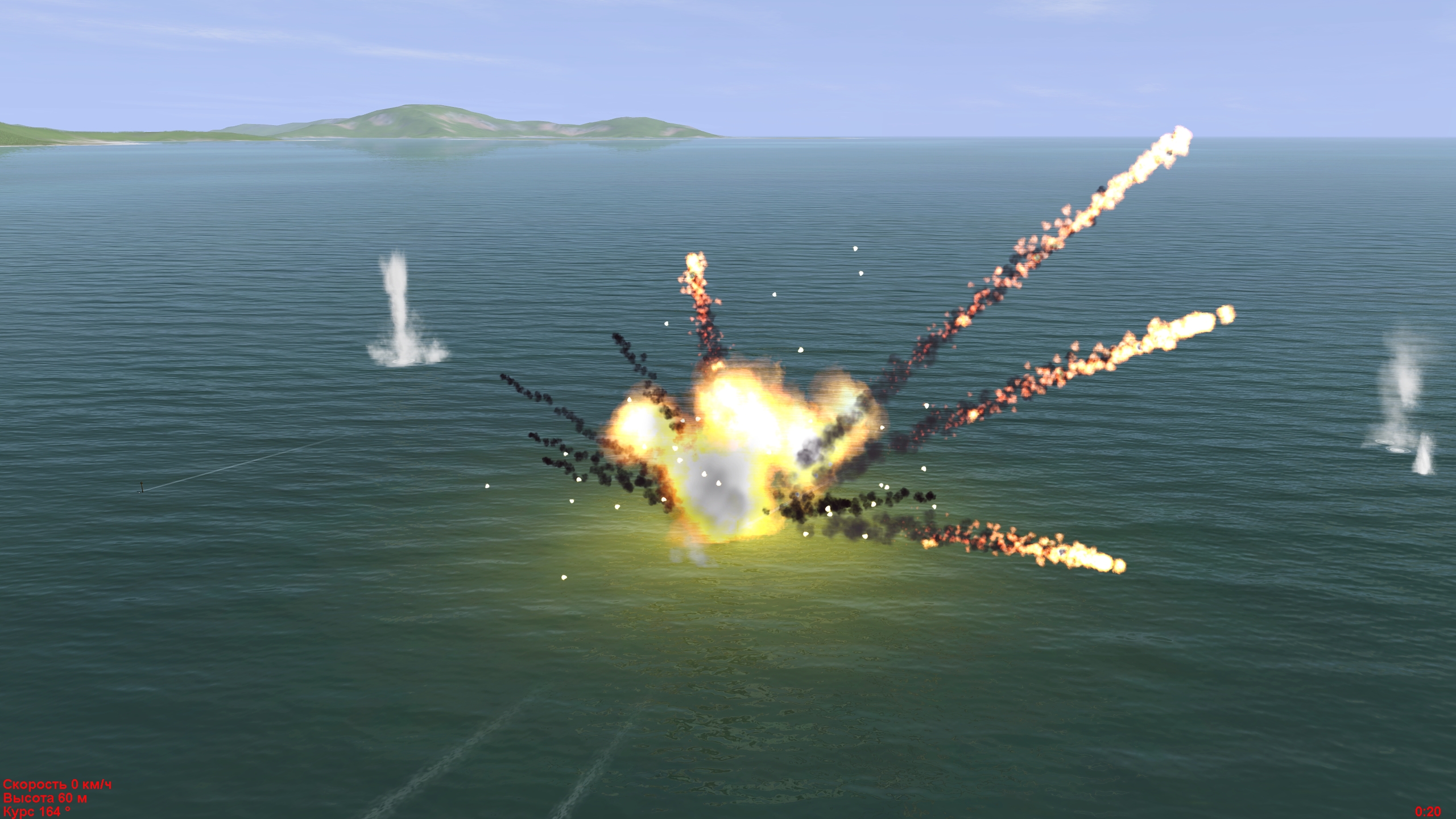 В моде, как писал выше, очень не устраивало появления только огня после затопления подводных подлодок скрины 2, 3 и грешил на себя - типа что-то не сделал-недоделал, а оказалось, что такая же фигня и в дефаулте скрин 4, ну это просто годами Ил не включал с дефаултными эффектами и уже забыл как они выглядят. Посмотрел "недоделанный" разрабами код, ну и он естественно не по мне, а значит так и будет на всех подводных подлодках скрин 5, но есть и бальзам на душу - по времени на скринах 2 и 3 можно представить с какой скоростью растут пятна нефтегорючки.