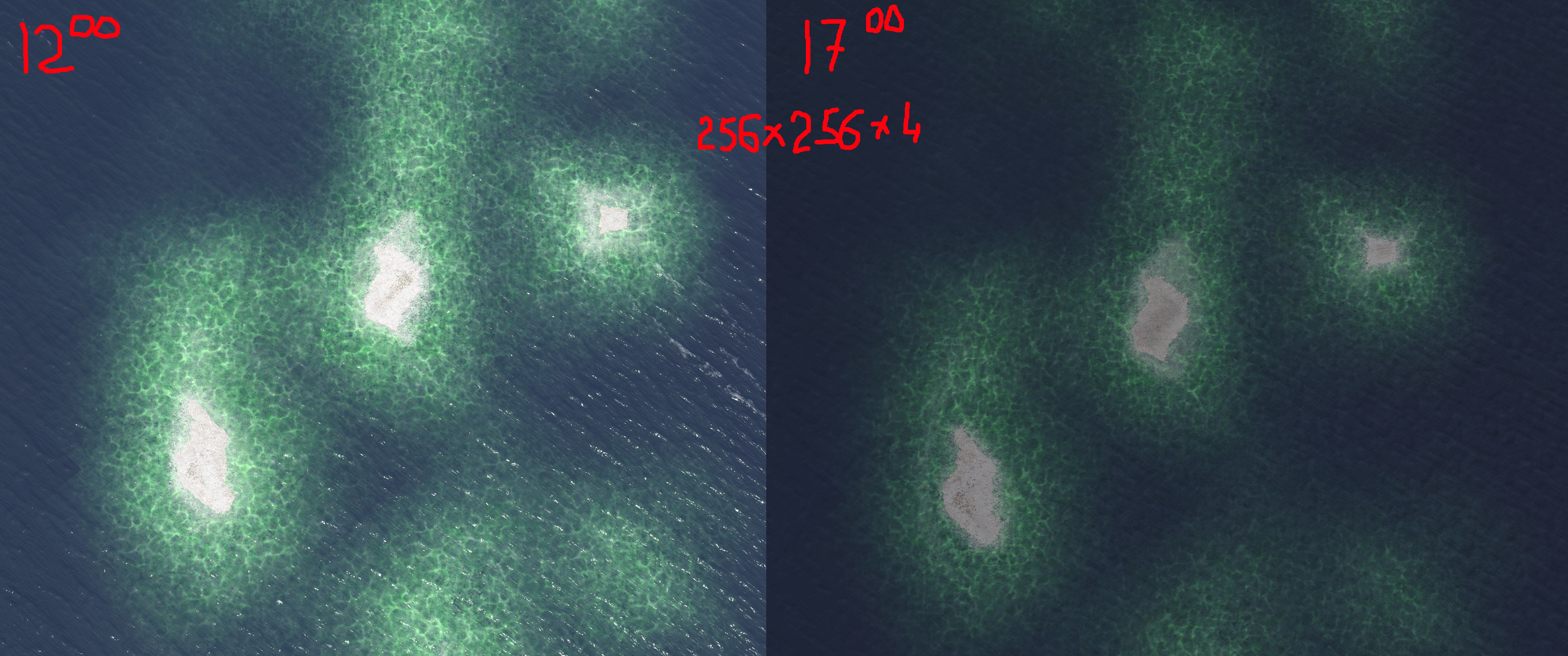 Эффект дёрганий очень заметен, когда рядом глубина и отмель, хотя это нельзя назвать дёргания волн - волны не дёргаются, они как шли, так и идут, но как только накладываются на *Caustic.tga, то виден этот неприятный эффект, а вот смотря на дефаултное преломление света на отмели - такого нет, а может это только я вижу дёрганья... - хотя бы кто написал об этом. А скрин на атолле Мидуэй, где рядом и глубина и мелководье. Последний раз редактировалось YurBorR; 10.07.2024 в 09:15. |