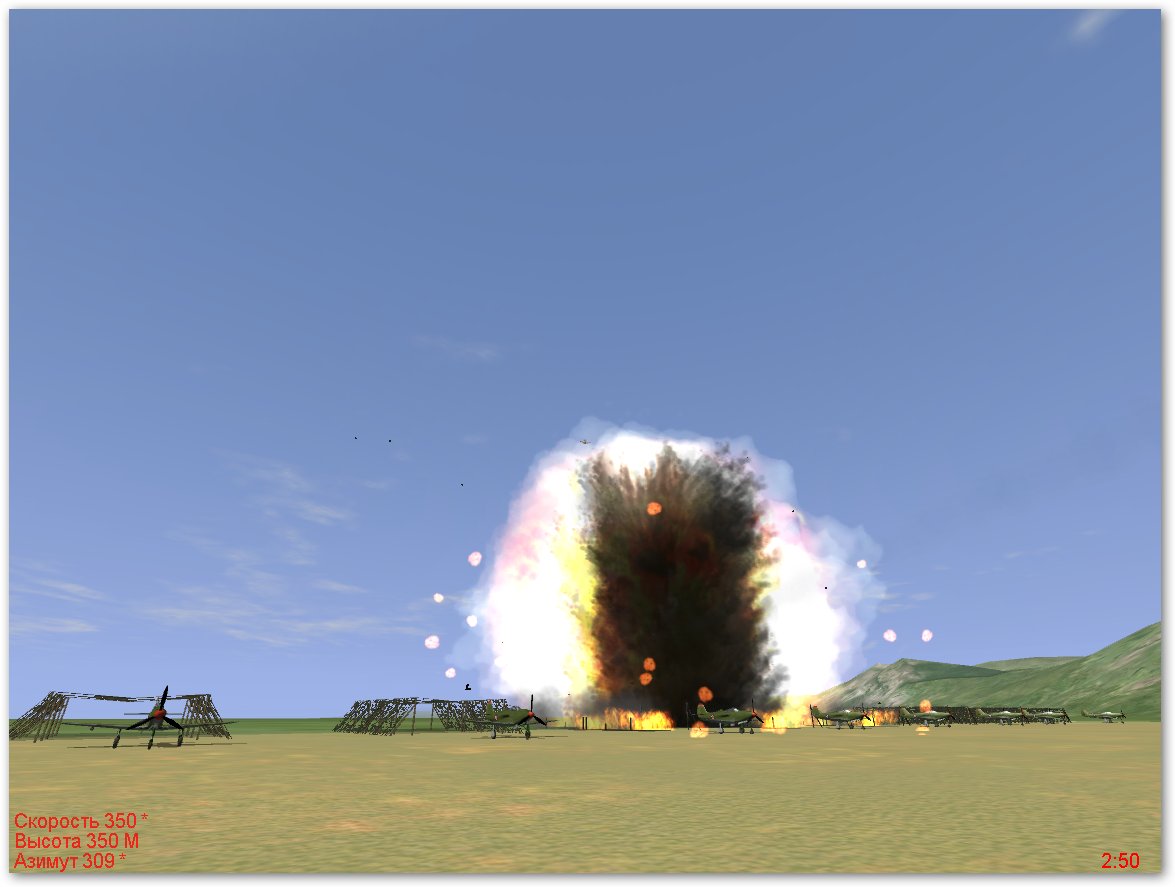 Спасибо Женя,вот опять поправил сборку эффектов,ссылка на скачивание на страничке 11,пост 203,скриншоты выше постом,переделал попадания,видны все от мелких калибров,горение наземки самолей,дымы,только у колонн,дома стат самоли не дымят,ботам мозг подправил,летать стало интересней с ними,ну и по мелочам,да чуть не забыл-прикрутил от петрушки злого мод сброса бомб,если в конф ини вставить эту строчку