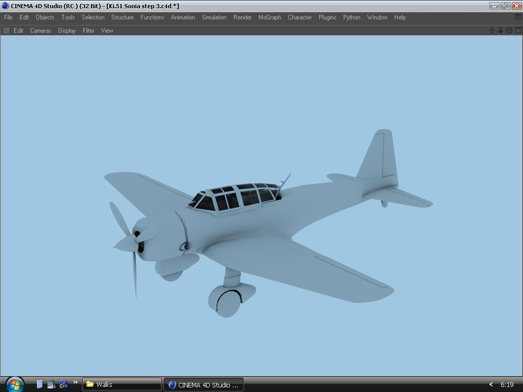 Делая крылья радиатора, обратил внимание на неверно сделаный моторный отсек. Переделываю. Заодно поправил пузо машине. Каждая сворка основного радиатора является независимым объектом с установкой оси Y таким образом, чтобы створка открывалась корректно ("как дверца")