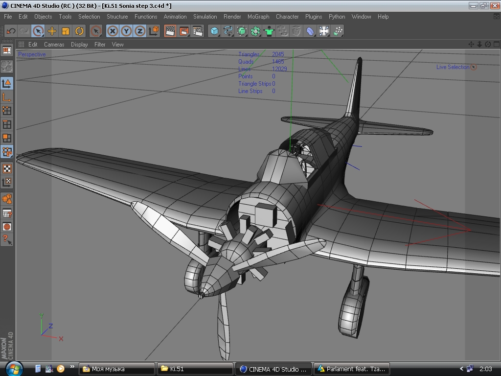Делая крылья радиатора, обратил внимание на неверно сделаный моторный отсек. Переделываю. Заодно поправил пузо машине. Каждая сворка основного радиатора является независимым объектом с установкой оси Y таким образом, чтобы створка открывалась корректно ("как дверца")