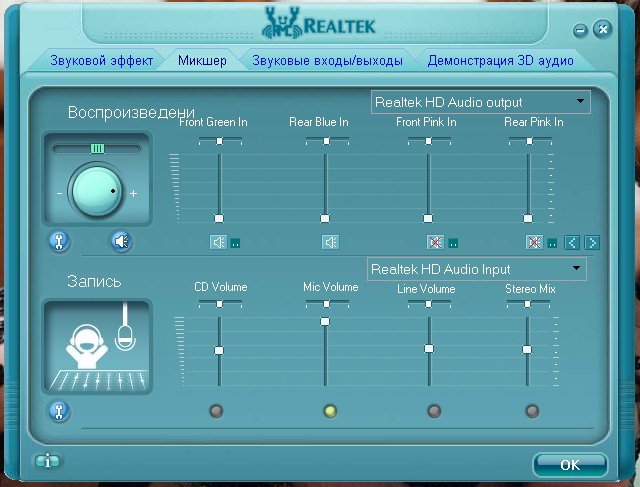 Кто разбирается в железе, помогите советом. на realtek high definition audio микрофон не работает, эта проблема для меня не нова, в прошлую установку ОС то же самое было, но каким-то образом я настроил микрофон, а сейчас не могу вспомнить, что делать. Весь остальной звук в порядке, все подключено (на заднюю панель) верно. Работаю под ХР сп 3 На всякий случай вот скрины с моих устройств