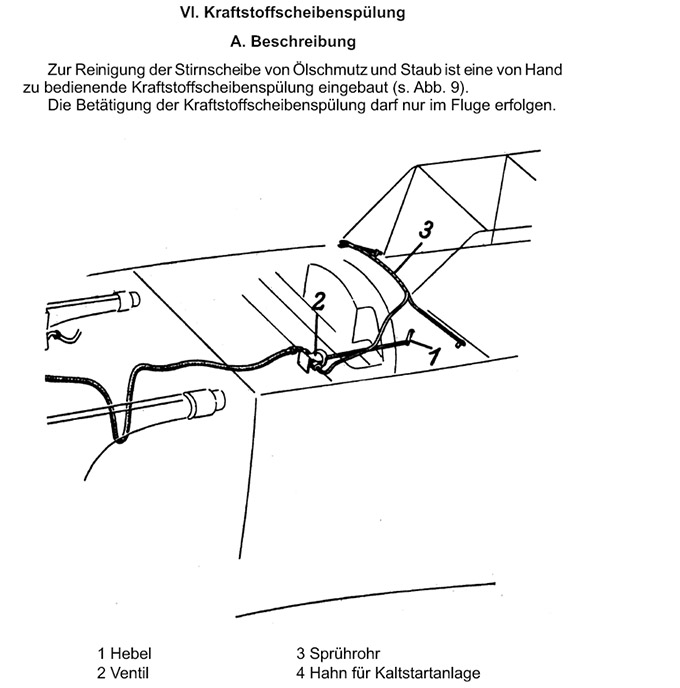 "Для очистки лобового стекла от масляных пятен и пыли разработан омыватель лобового стекла топливом с ручным приводом. Устройство должно использоваться только в полете." Так что масло смывалось бензином, а не спиртом. Что логично