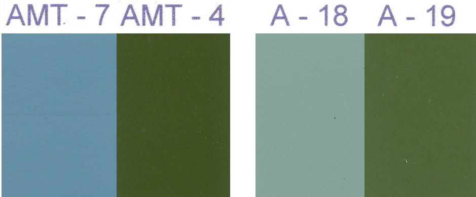 Что-то сомнения у меня на счет того что их надо брать, особенно насчет А-18. Хотя может действительно тот цвет, просто от AMT-7 он существенно отличается, а на почти всех боковиках присутсвует цвет похожий на AMT-7. Где-то неправда.