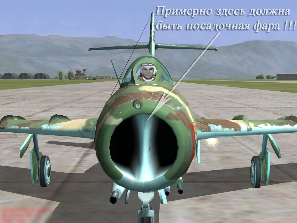 Вы то сами глядели этот учебный фильм ? Вот на скриншоте показываю где должна быть посадочная фара у МиГ-15...