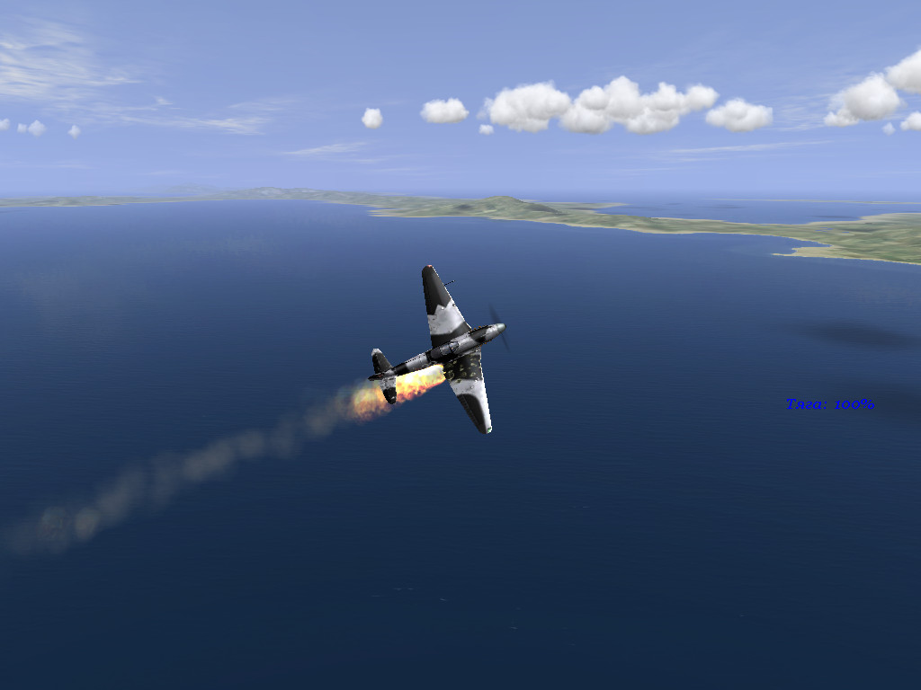 Скажут мне - там наддув выхлопными газами и т.п. Так у меня Як-9 и не горит от пары тройки пуль как Хаябуса. Так как на картинке - то это попадания М-Джессос в одно или два крыла. Так же загораеться Як от хорошей очереди настроенного Браунинга-50 - в нём(в пулемёте) я в точности проставил ТТХ реального Браунига-50 - теперь он поджигает и бывает в упор пилит крылья у истребителя, но подбить как раньше несколькими попаданиями уже не получиться - бронебойные пули Браунинга просто проходят насквозь, но поджигают горючие части самолёта. Так что если правильно по ТТХ настроить самолёт и оружие - то Ил(наш древний Ил) весьма успешно моделирует ситуации как оно и должно происходить в реальности(конечно не на 100 проц., но похоже). Кстати - после поджога бака бронебойно-зажигательными пулями в течение минуты бак спокойно тухнет, а подбитый и забытый в пылу боя самолёт, спокойно уходит на базу чиниться. А вот после попадания фугасными снарядами или разрывными пулями типа Хо-103(очереди на 15-20 пуль) - бак уже не тухнет и горит пока пилот не прожариться и самолёт не упадёт. ![]() Ил симулирует ситуации на отлично.