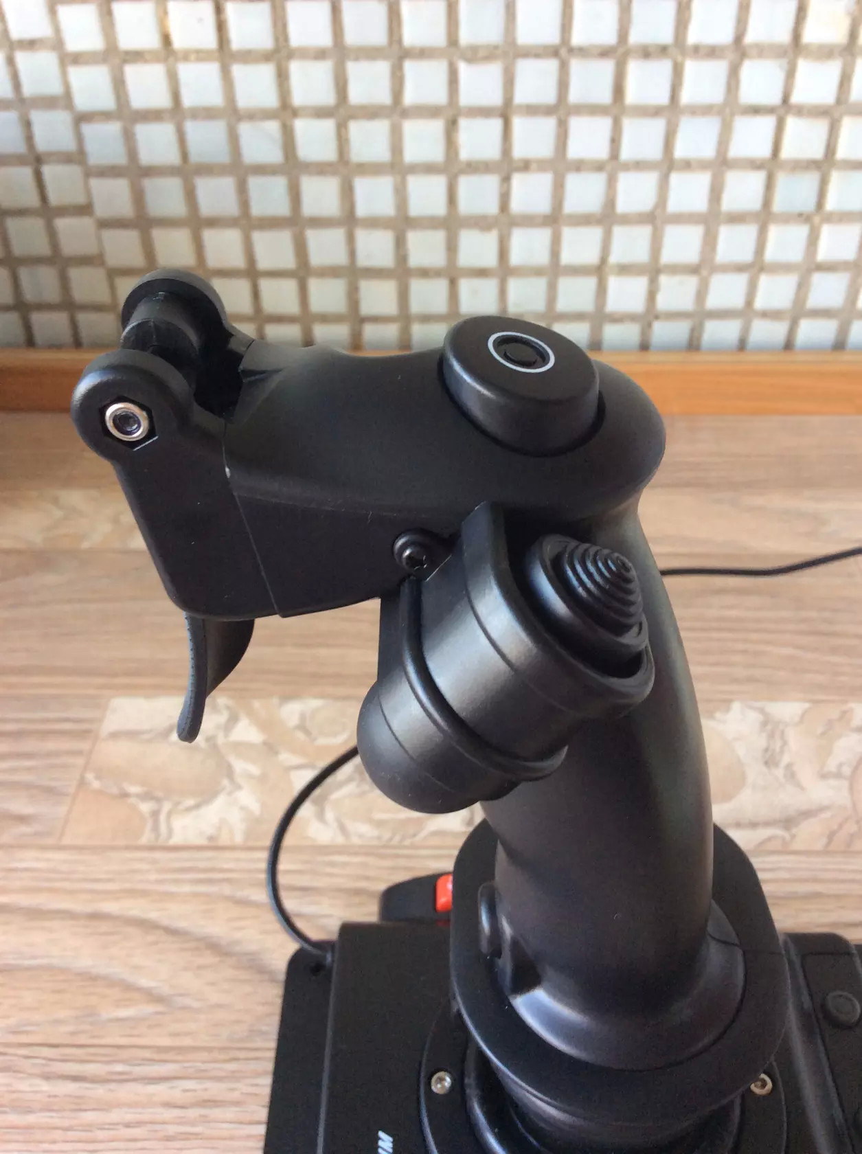 2. Большой палец удобно лежит на хатке и в "пылу боя" для стрельбы жал именно на хатку, т.к. палец уже лежит на плоской поверхности и я был уверен, что это - пушка, а тут облом и случалось это у меня за три дня частенько. Конечно хатка и верхняя кнопка отличаются, но в "пылу боя" различия, как оказалось для меня, размываются. Со временем уверен, что это должно бы пройти, как прошло при пользовании педалями - в первые дни рука тянулась к кнопкам руля на клавиатуре, но ждать "ухода этого эффекта" не стал: со старого джоя Thrustmaster спилил хатку и приклеил на хатку Гладиатора. С новой хаткой появилось много плюсов: