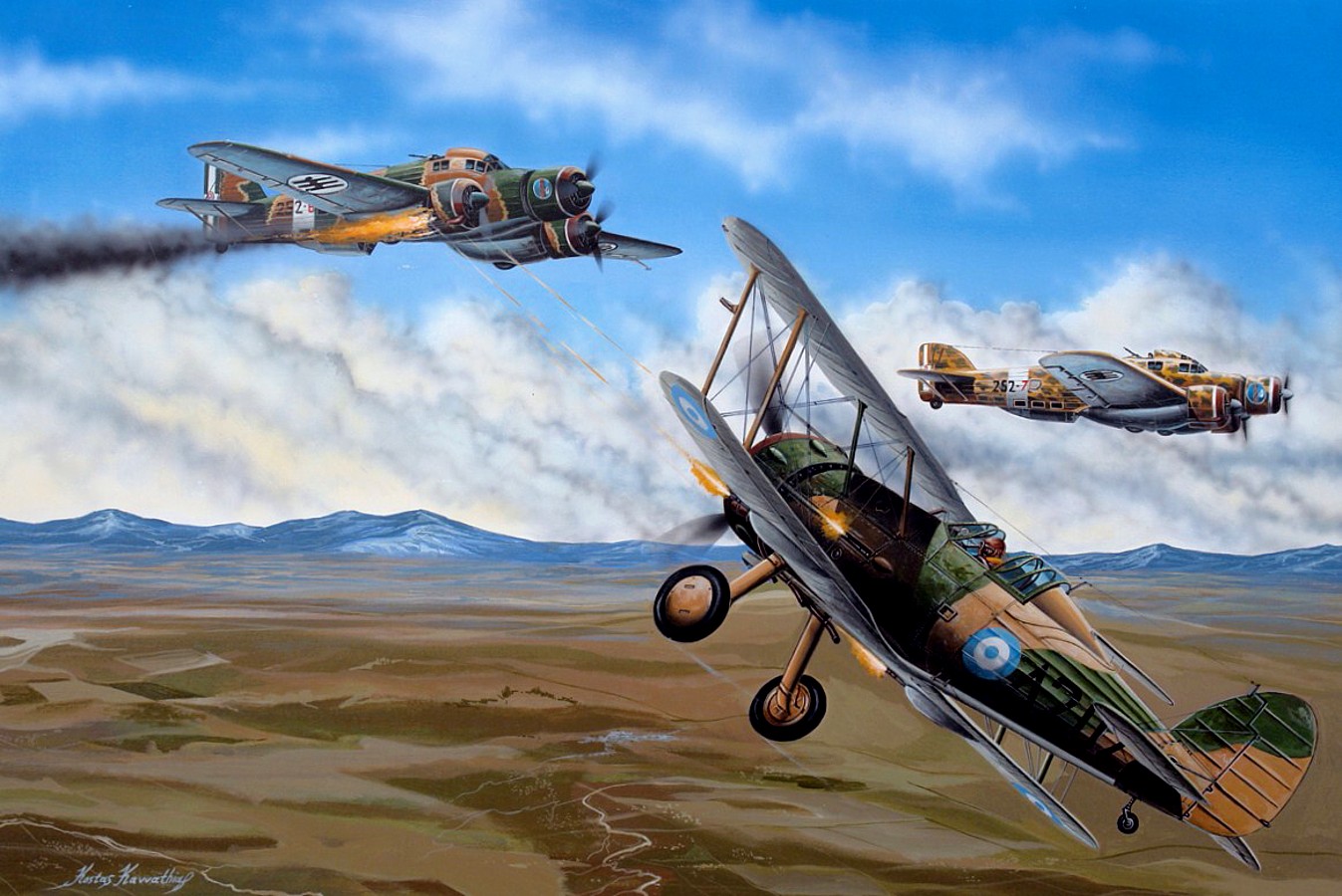 Следующие две кампании автора Boser. Первая безмодная, статическая - за ВВС Великобритании – называется "КРАСНЫЙ ПЕСОК." Вы английский летчик-истребитель, летаете на ГЛАДИАТОРе и воюете против ВВС Италии в Восточной Африке в 1940-41 г.г.