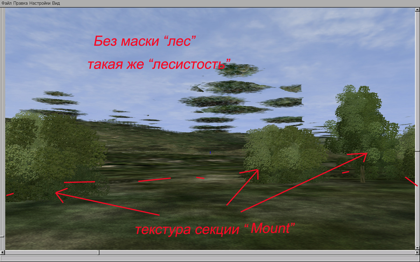 Но деревьев в лесу в маске «леса» не обнаружил. Есть «пограничные» деревья, но они с другой текстуры граничащей с лесом ( особо лесистые текстуры в секции Mount ч/б-8,9,10