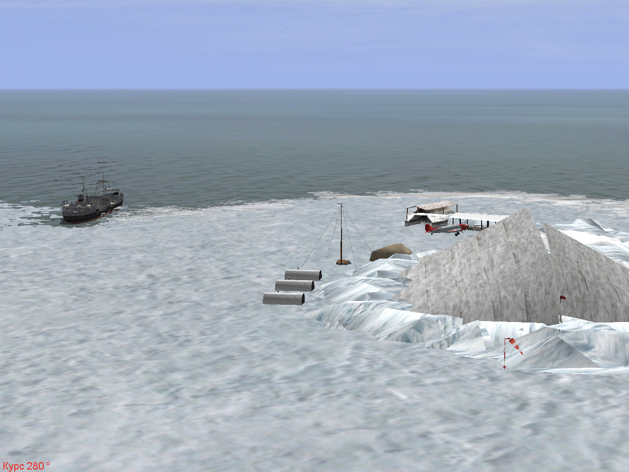 В качестве компромиссного варианта предлагаю (но не настаиваю): 1) центральную льдину, на которую садится самолет, оставить на текущей высоте; 2) припаи опустить до уровня моря (0.1-02), чтобы они совпадали с ватерлинией кораблей; 3) образовавшиеся ступеньки сгладить ледяными торосами, с ролью коих ИМХО неплохо справляется объект Iceberg03 из пака от Boomer и из карты Антарктиды. Пример - на скриншоте "Припай на уровне моря". Понятно, что за пределами ледового поля (за торосами и на припае) самолету игрока делать нечего. Правда, при этом не решается проблема размещения стационарных самолетов, но если создатели этого гениального пака: http://forum.aviaskins.com/showthread.php?t=4930 пойдут навстречу, согласившись создать хотя бы DC-3/C-47/Ли-2 (в идеале на лыжах) для меню "Объекты", это было бы решением проблемы. Ведь если Ан-2 из этого пака можно использовать только с середины 50-х, то "Дакота" была бы универсальным солдатом для всех эпох - с середины 30-х до середины 60-х. Наверняка в MFSX что-то подобное есть. А потом при желании и доброй воле пак полярной авиации можно было бы расширять. Нерешенная проблема: взрыв самолета игрока при попытке взлететь со льдины. Но штатная тестовая ВПП№1 ведет себя аналогично, в отличие от авианосцев. Идей по решению пока нет.