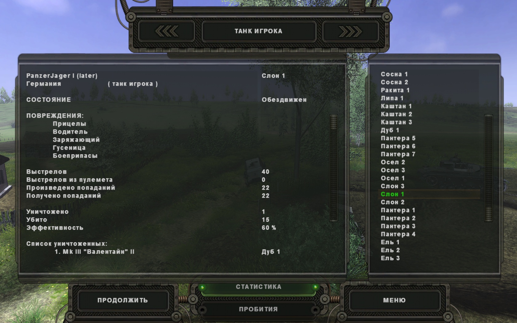 Скрины подбитых мной. Причём некоторые со своей статистикой, противник крепкий попался