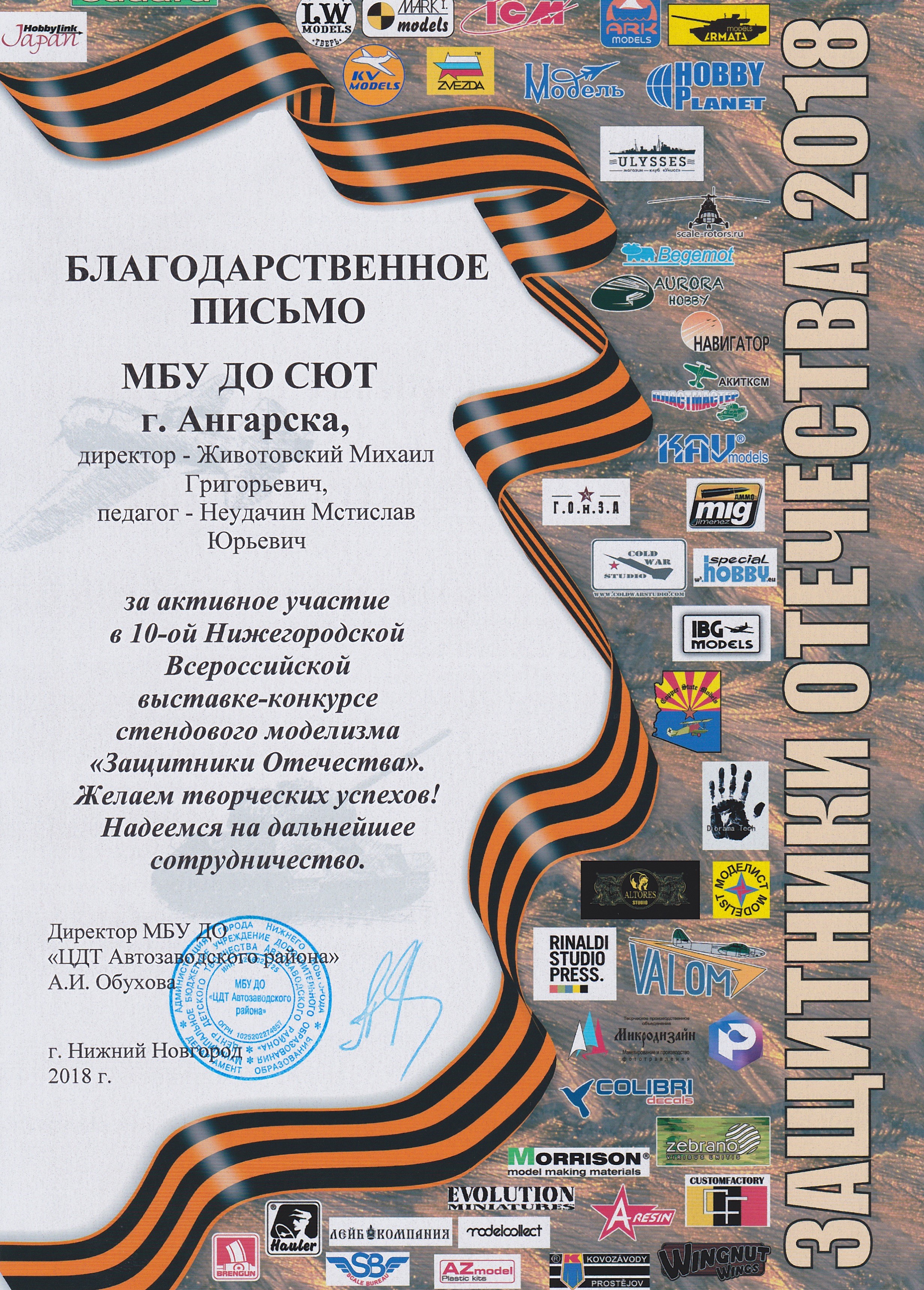 От СЮТ трое участников и мой друг из Ангарска. Итог по юниорам: Елисафенко Павел 1 место в номинации Военная техника других стран в 1-35. Данкин Илья - специальный диплом. У меня тоже 1 место за шарика.