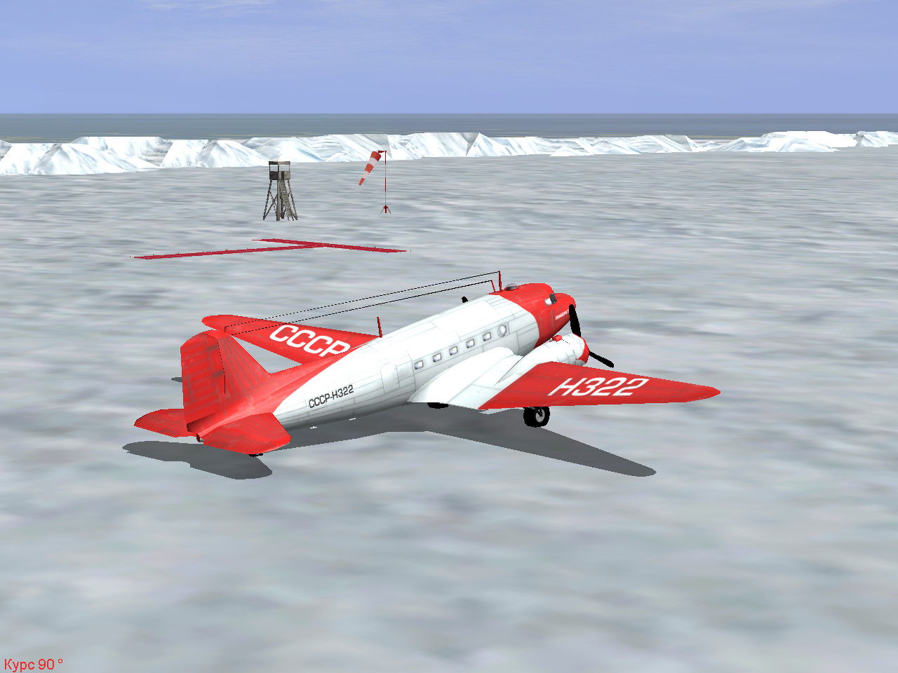 Самолет появляется не по оси, но в приемлемых пределах ледового аэродрома и аннигилируется по его краям (на припае или в воде). См. скрин.Еще раз спасибо за полезный ликбез.