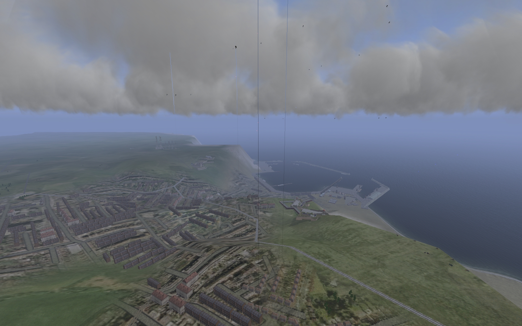 Как-то я раньше обходил вниманием такую штуку, как аэростаты заграждения. Конечно они у меня в кампаниях давно есть, но внимания им не было)) Вот аэростаты над Дувром. Этот порт в 1940-42 постоянно бомбили, а в 1942 его часто штурмовали жабоштаффели. Поэтому англичане создали над Дувром (и другими соседними портовыми городками) особо мощное заграждение из аэростатов. Конечно для бомберов летящих на большой высоте они не проблема, но для штурмующих истребителей могут быть реально опасны: