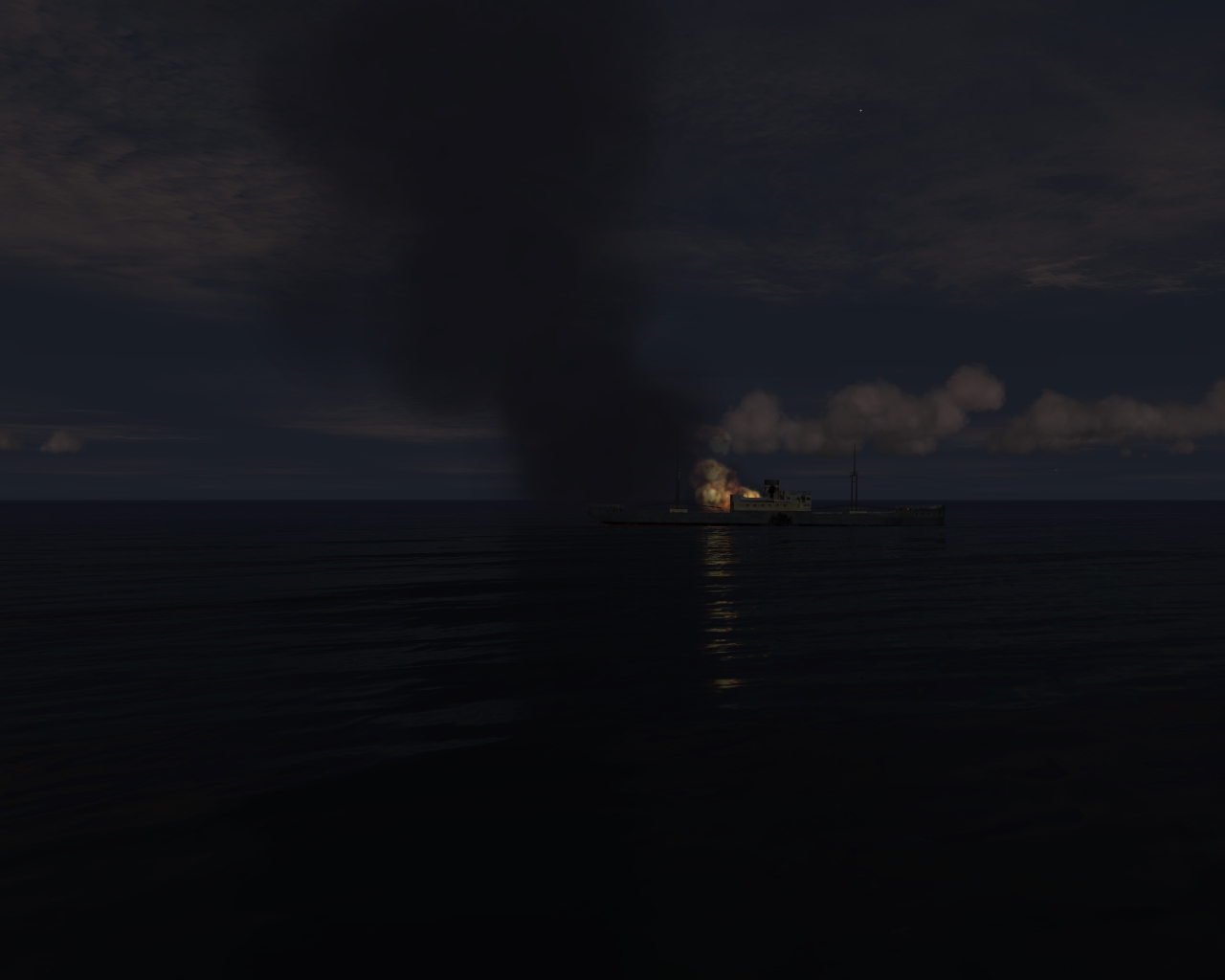 Но это так сказать генерик - он не очень пока. Пятно света на воде гораздо интенсивнее должно быть. А вот если бы танкер выделить отдельным классом и сделать ему пятно горящей нефти то вот было бы то самое. Просто добавить хуков на модель только посадив их на воду. Но необходимо описать их в классе.