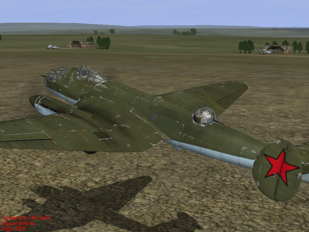 Попробовал взлет Ер-2 с ВПП Монино с нагрузкой 2х1000, 4х500, топливо 10 процентов. АИ взлететь не может, у самого получается, хотя и на форсаже. Чувствуется напряг. Маршрут выставлен до Ново-Дугино, бомбардировка аэродрома, и обратно. Забавно: после взлета выставляю автопилот, и через некоторое время автопилот избавляется от бомб и идет прежним курсом.