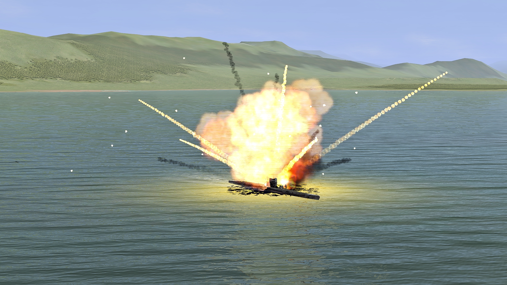 "реализовано" - ну хоть что-то, но пятно не колышется на волнах и один размер пятна на все тоннажи, также как и один размер взрыва кораблей и больших и малых.