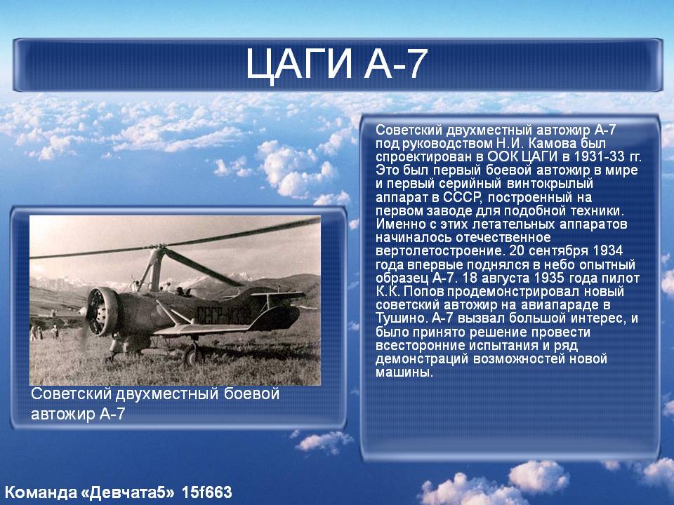 Коллеги, представляю отдельные статьи, посвященные очень интересному советскому боевому летательному аппарату периода конца 30-х – начала 40-х годов. Речь идет о серийном советском боевом автожире А-7, конструкции Н.И.Камова, который принимал участие в Советско-Финской (Зимней) войне 1939-40 г.г., а так же участвовал в начальном этапе Великой Отечественной войны.
