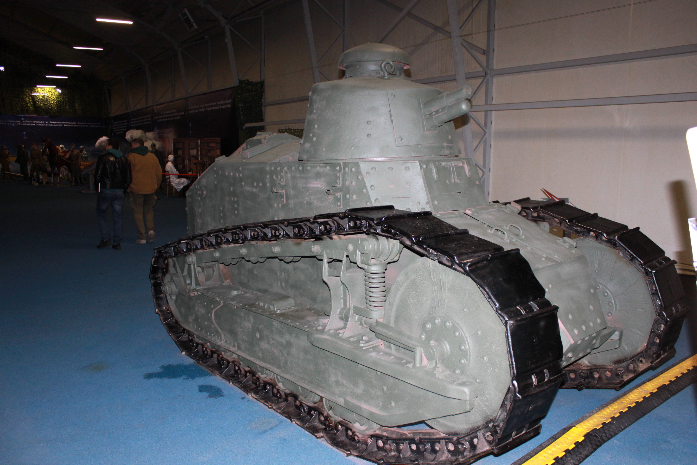 Кстати, это последний из Русских Рено. Башня от француза, возможно и часть ходовой, а корпус принадлежит одному из 15-ти выпущенных Русских Рено.