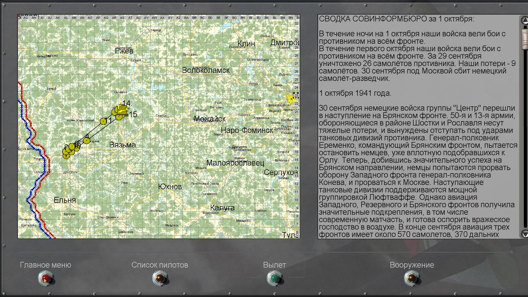 Проверил три кампании (см. миниатюру 4), всё работает исправно. Спасибо за оперативность. ![]() P.S. Что касается Васиных изысканий. Я пробовал его файлы, они не меняли положение вещей, то есть карта «Битва за Москву» после установки Васиных файлов в сборку IL-2_4.14.1m+DGenPACK 3.0 в брифинги динамических кампаний не загружалась. ![]() P.P.S. Сейчас только заметил. Почему-то в кампании "Истребитель. ПВО Москвы. 1941" не отображается линия фронта, надо бы исправить.![]() P.P.P.S. Снимаю свои претензии по поводу линии фронта в первой миссии кампании "Истребитель. ПВО Москвы. 1941".Только сейчас сообразил, что 2 июля 1941 года линию фронта просто не видно на карте "Битва за Москву", она проходит западнее западного среза карты.