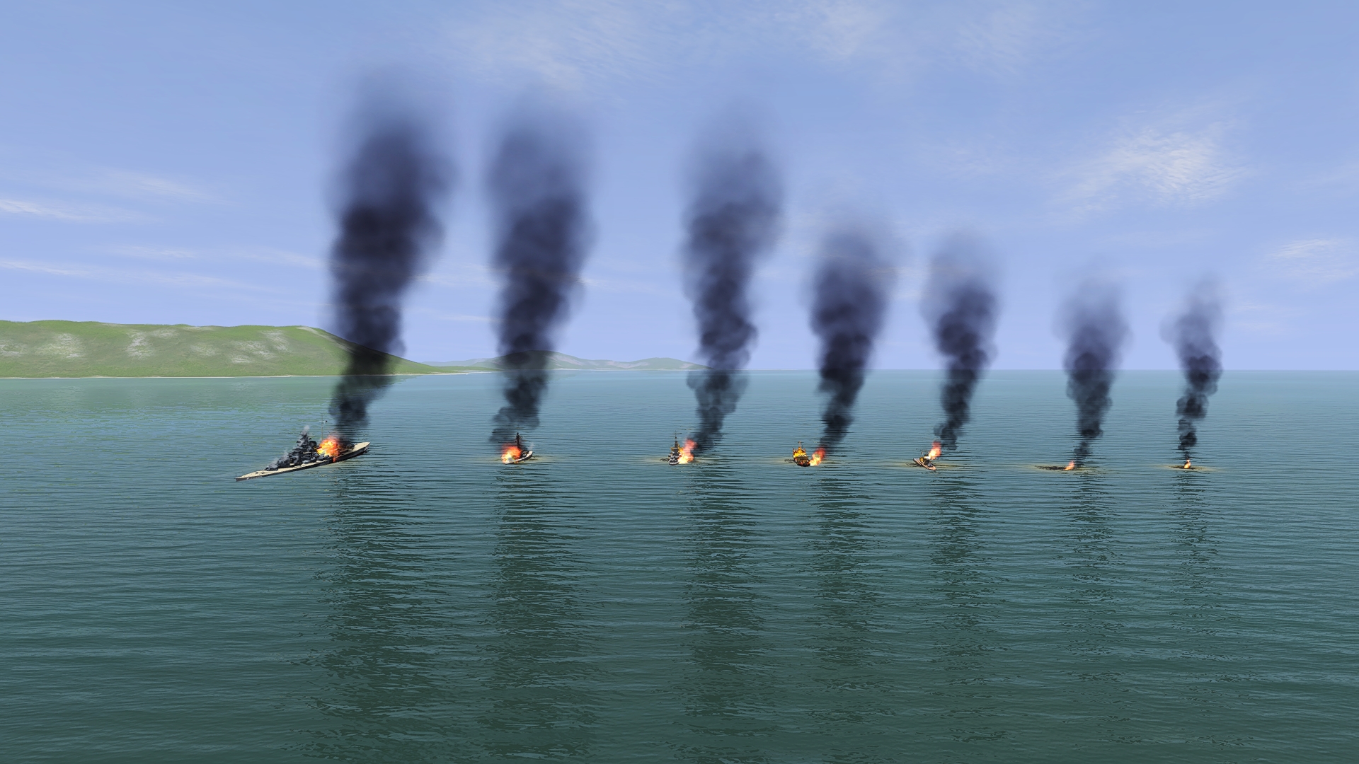 Василь, это "вечные" варианты "косметики": например "огненный ёжик" на кораблях, составах с б/п, платформах с зенами с б/п был с "голым" огнём (скрин 1) и со временем это стало не по мне и добавил дымка (скрин 4). Вот и дым на кораблях слегка по высоте увеличил (скрин 3) по сравнению в посте 163, а есть ещё "дефаултная нестыковка": при столкновении кораблей они как бы взрываются, но не горят и в дефаулте то ничего нет, а у меня то и взрыв и отсвет от пожара, а пожара то и нет (скрин 2) - ну и фиг с ним, столкновения - редкость. Поэтому опять пробую варианты и предложить то пока и нечего...
