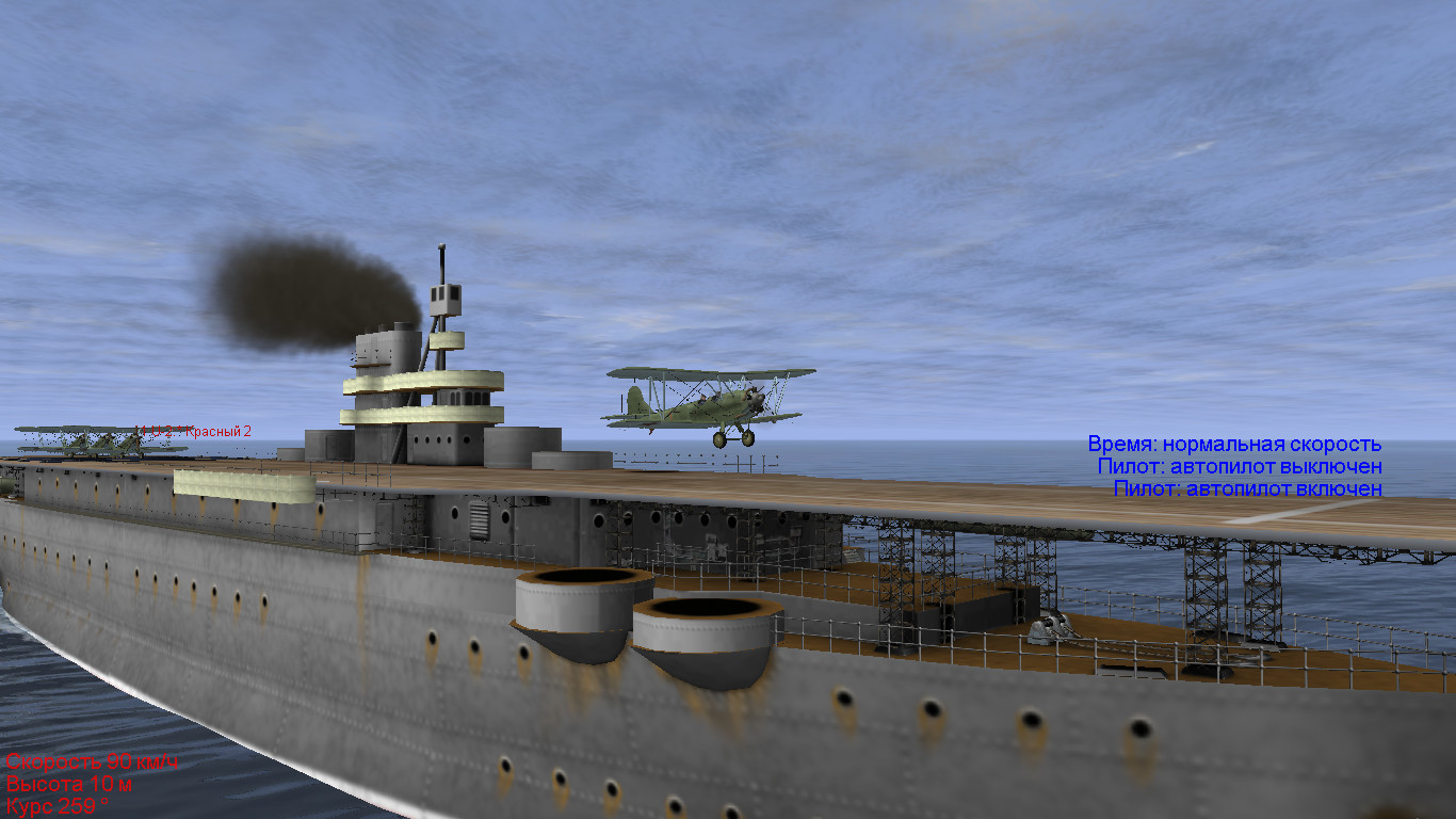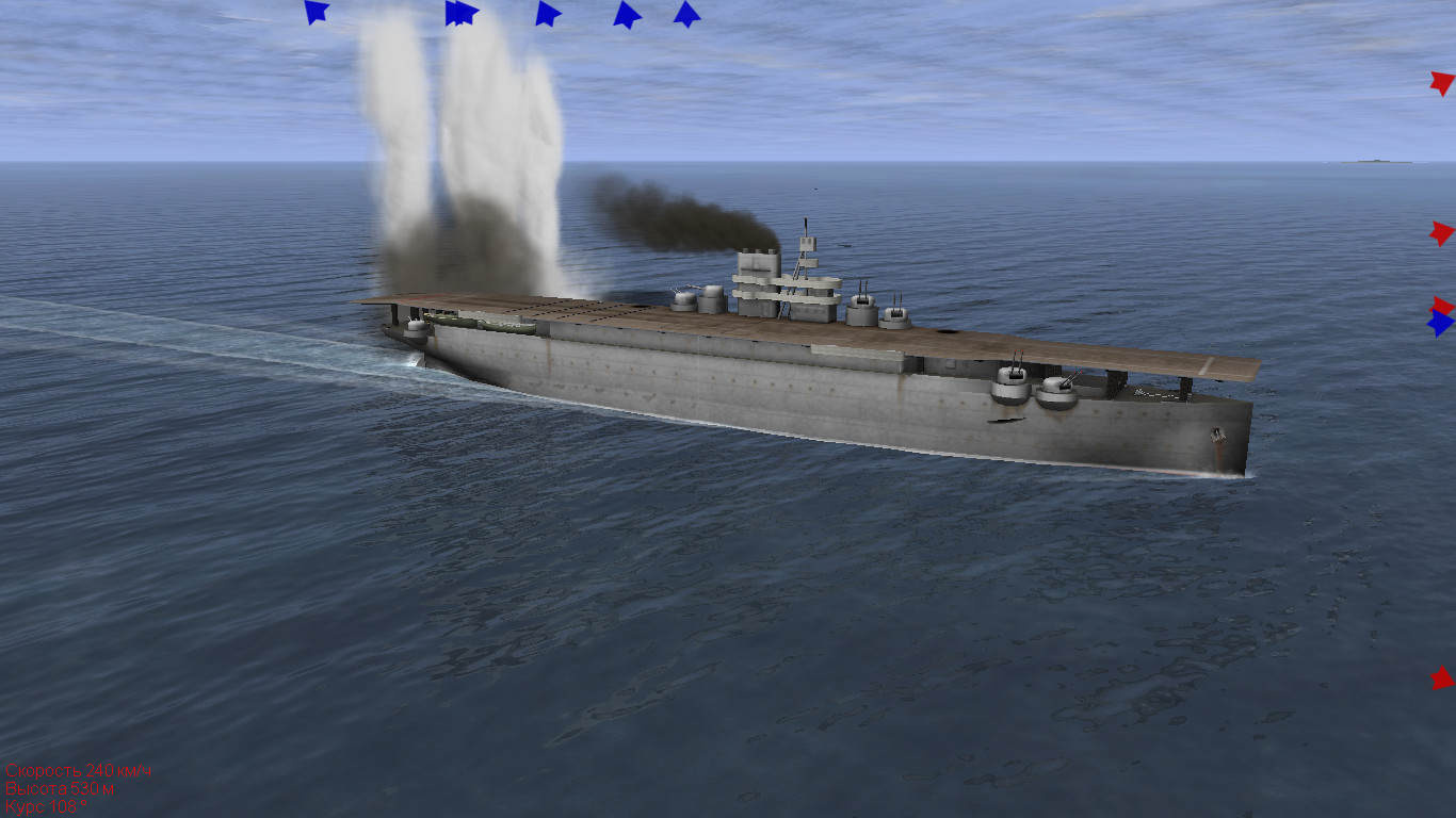 Долго крутил-мудрил с "парками" взлета, в итоге оставил все как на Хошо, несколько сдвинув все влево к корме. Получилось не очень правдоподобно, но теперь самолеты могут взлететь не цепляя крылом надстройку. Странно но даже Су-второй способен взлететь, правда без загрузки. Осталось разобраться с кильвальтером.