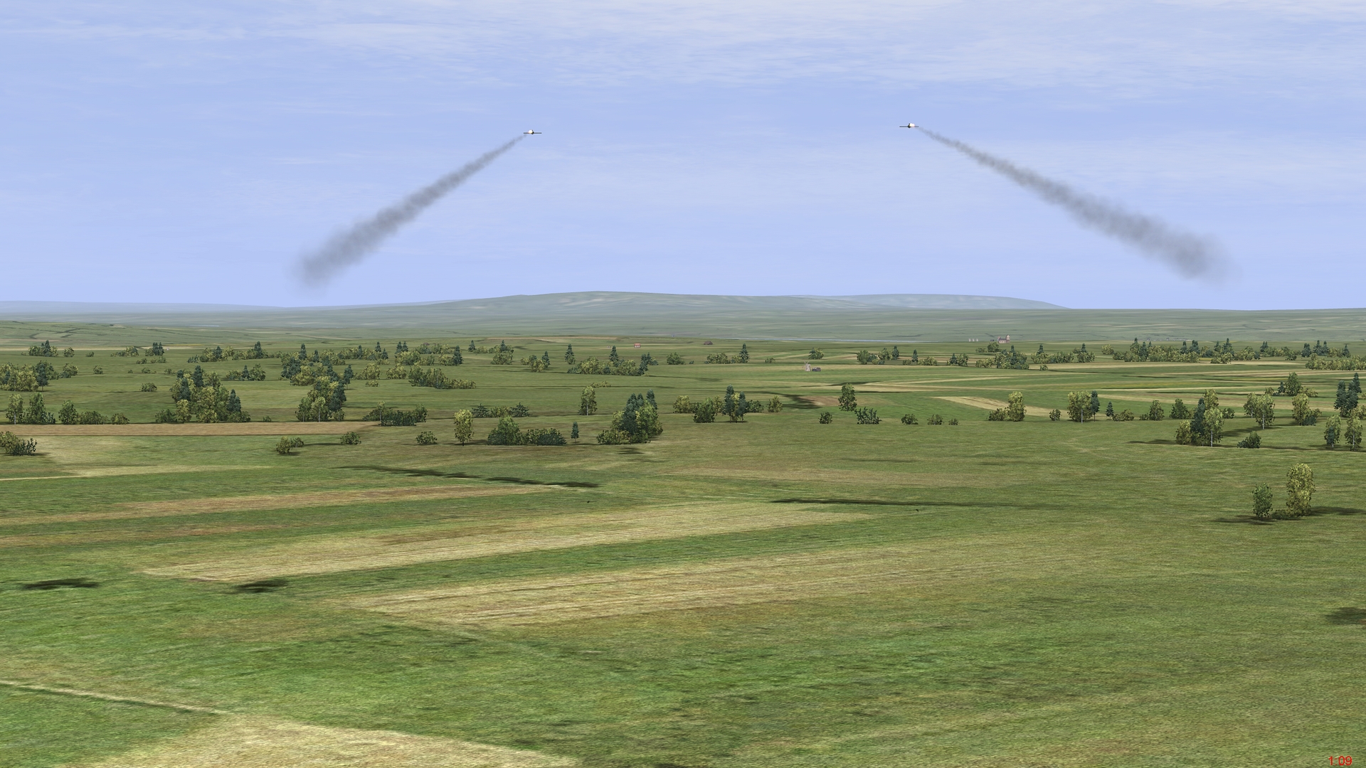 А вот над огнедымом просьба работу не прекращайте - многие считали что дым сбитого самолета черный - тут вина черно белой хроники и пропагандистской комбинированной сьемки. "подлый враг должен гореть черным дымом аки сатана..." Тут рекомендую смотреть американские ганкамы с тихоокеанского ТВД. Сьемка изначально велась в цвете и при ярком освещении. Облако огня с минимальным дымом ----выброс распыленного высокооктанового бензина с мгновенным и полным сгоранием. А вот то что упало и догорает тут простой костер из мусора и никакой аэродинамики. А разделить эффекты горения в воздухе для аллюминиевых+ магний машин и деревянно полотняных в игре не возможно. Хотя может я и ошибаюсь.