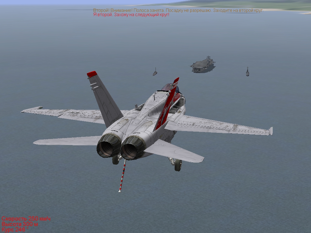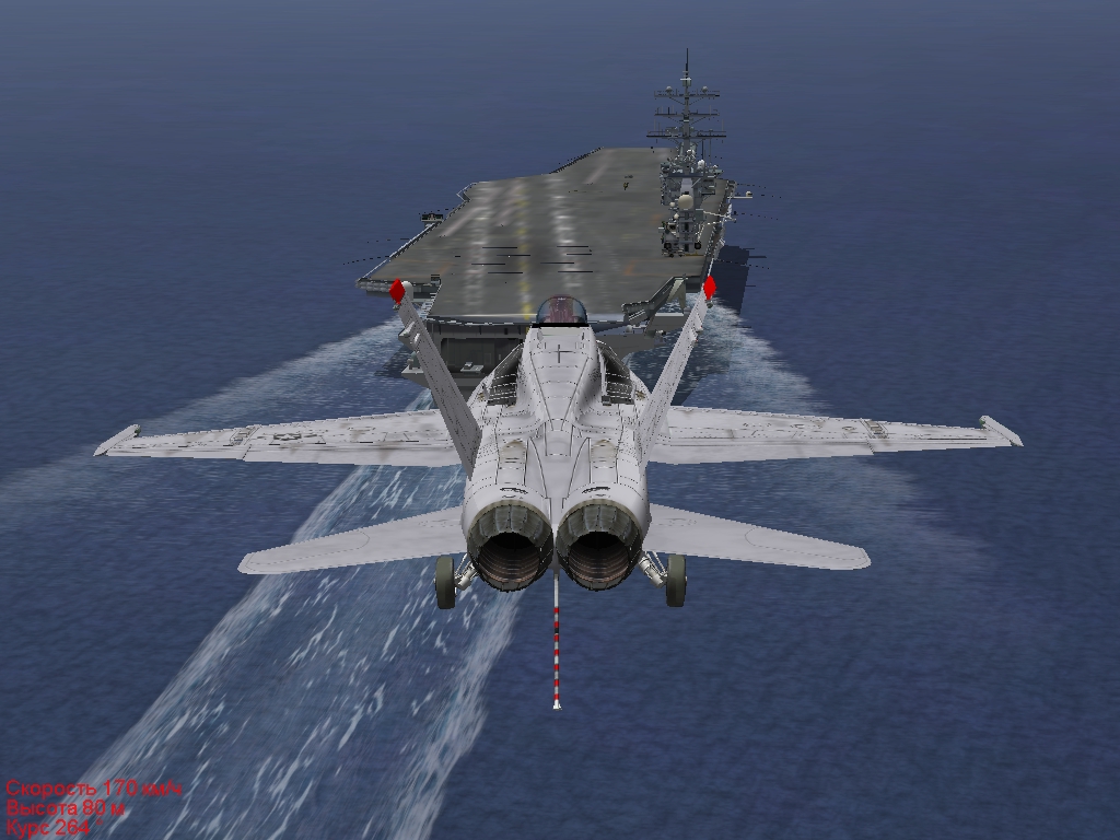 Короткий брифинг: Вы ведущий пары палубных истребителей F-18C. Необходимо произвести посадку на палубу неподвижного авианосца «НИМИЦ». Погода ПМУ. |