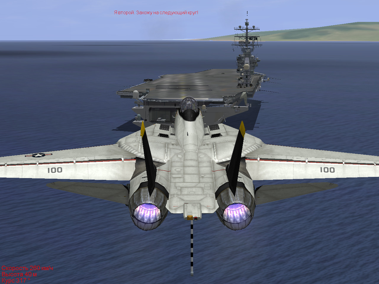 - Вторая тест мисс «F-14B 2» - это посадка на палубу неподвижного дефолтного авианосца «ЭССЕКС», миссия сделана на дефолтной карте «Ку-шу (Южная Япония)».