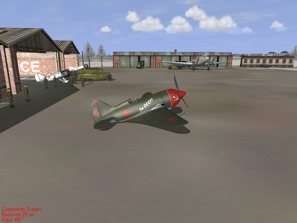 Первая миссия «В.ЧКАЛОВ – mis 1». Текст брифинга: 12 декабря 1938 года. Город Москва. Центральный аэродром им. М.Фрунзе (Ходынка). Стоянка Летно-испытательной станции (ЛИС). Время: 13 час 15 мин. Метео условия: простые, легкие кучевые облака с нижним краем 2000 м. Температура наружного воздуха минус 4 градуса. Скин самолета: I-180 red guard. bmp ПОЛЕТНОЕ ЗАДАНИЕ: Сегодня испытательный полет опытного истребителя И-180 не планируется. Запланировано только контрольное руление по рулежной дорожке и ВПП на разных скоростях с маневрированием (поворотами влево, вправо и разворотами), проверка мотора и тормозов. После выполнения контрольного руления зарулить на стоянку ЛИС. Руление выполнять очень осторожно, плавно работая сектором газа, педалями и тормозами колес – самолет склонен к заносу хвоста при резком маневрировании на рулении. В реальной истории в этот день В.Чкалов, видимо, планировал, кроме контрольного руления (в нарушение полетного задания) выполнить разбег по ВПП и небольшой «подлет» самолета с набором высоты 1-1,5 метра с проверкой устойчивости и управляемости самолета с последующим приземлением и пробегом (но, возможно, он планировал совершить в этот день и свой первый полет на И-180). Но, сделать это ему не удалось – на ВПП выехали три автомобиля «ПАККАРД» из личной охраны Сталина и перегородили ВПП. Начальник охраны подошел к самолету и передал приказ Сталина о запрете поднимать в воздух опытный самолет И-180 до полного устранения всех его неисправностей. В.Чкалов развернул самолет и порулил на свою стоянку, но, не «доезжая» до нее примерно 200 м, мотор самолета заглох (разрушился наконечник тяги управления дроссельной заслонки карбюратора мотора). Т.е. 12 декабря Сталин фактически спас В.Чкалова от его возможной гибели в случае совершения им полета. |