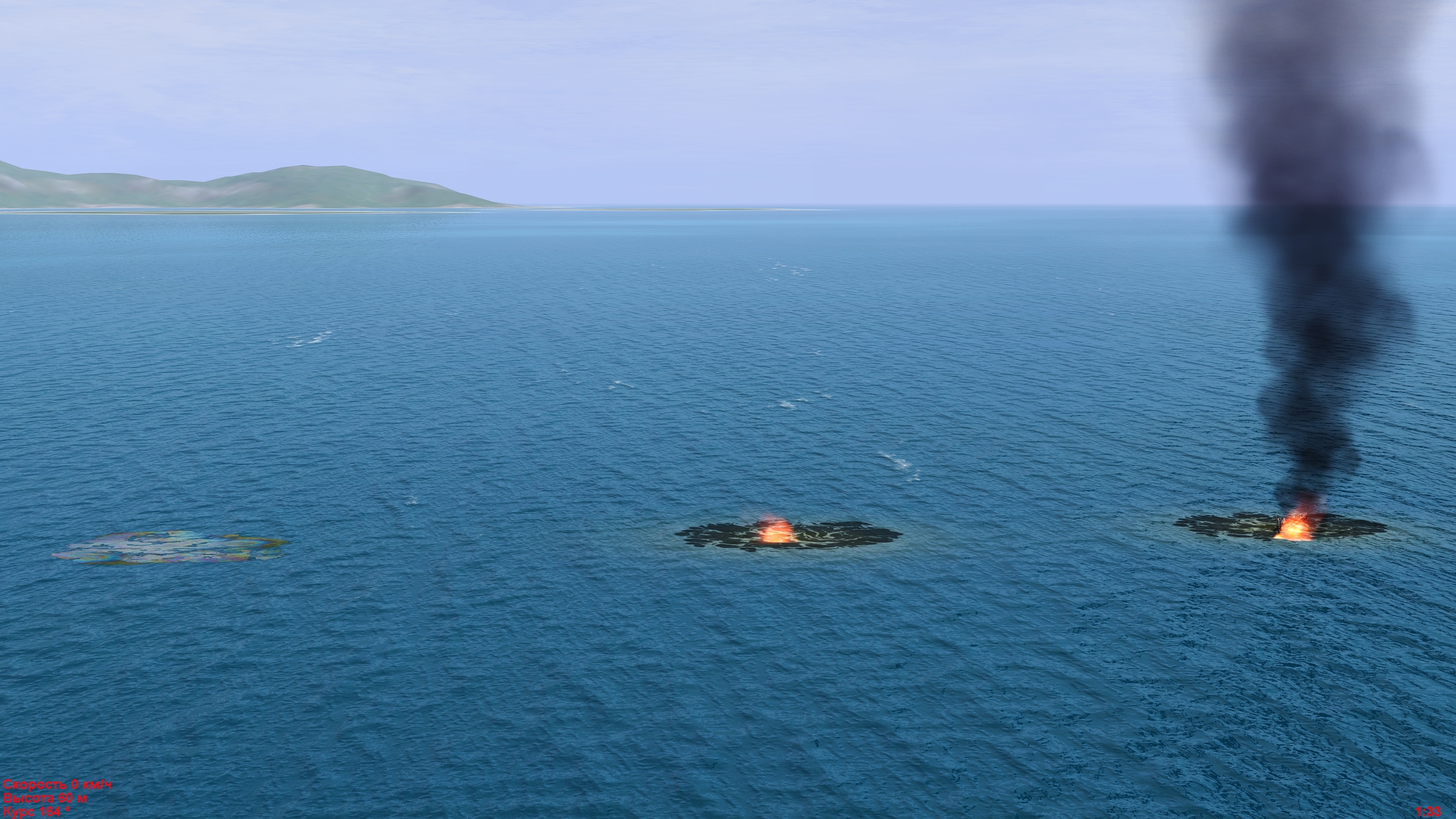 В моде, как писал выше, очень не устраивало появления только огня после затопления подводных подлодок скрины 2, 3 и грешил на себя - типа что-то не сделал-недоделал, а оказалось, что такая же фигня и в дефаулте скрин 4, ну это просто годами Ил не включал с дефаултными эффектами и уже забыл как они выглядят. Посмотрел "недоделанный" разрабами код, ну и он естественно не по мне, а значит так и будет на всех подводных подлодках скрин 5, но есть и бальзам на душу - по времени на скринах 2 и 3 можно представить с какой скоростью растут пятна нефтегорючки.