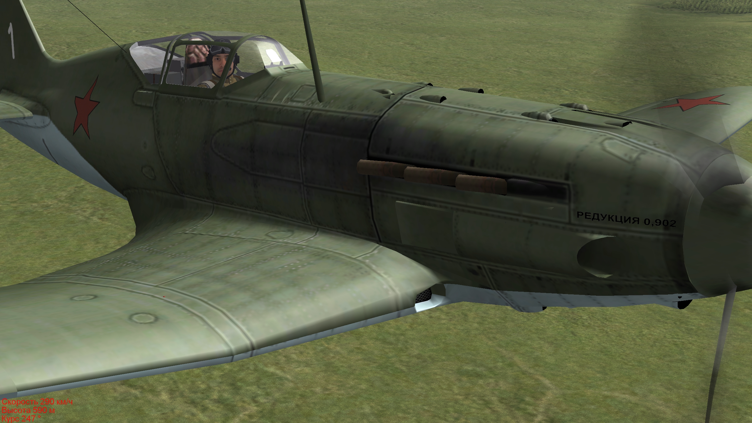 ![]() В архиве. Скорректировал класс кокпита - в патче 4.12.2 не грузился. Мотор свой - это типа 63 мотор, но с компрессором от двадцатки. Поэтому скорость на высоте не шибко что бы - около 650 на 6500 метров. Хотя... это даже многовато будет, не учёл пилоны для ракет.