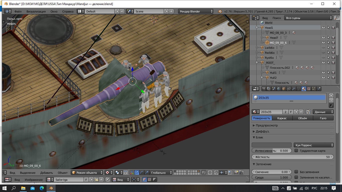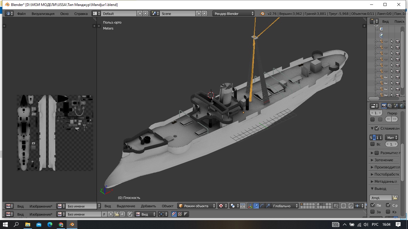 Закончил базовую 3д модель. Теперь работа с скинами: затенить, запачкать, покрыть ржавчиной, копотью. Добавить флаг.