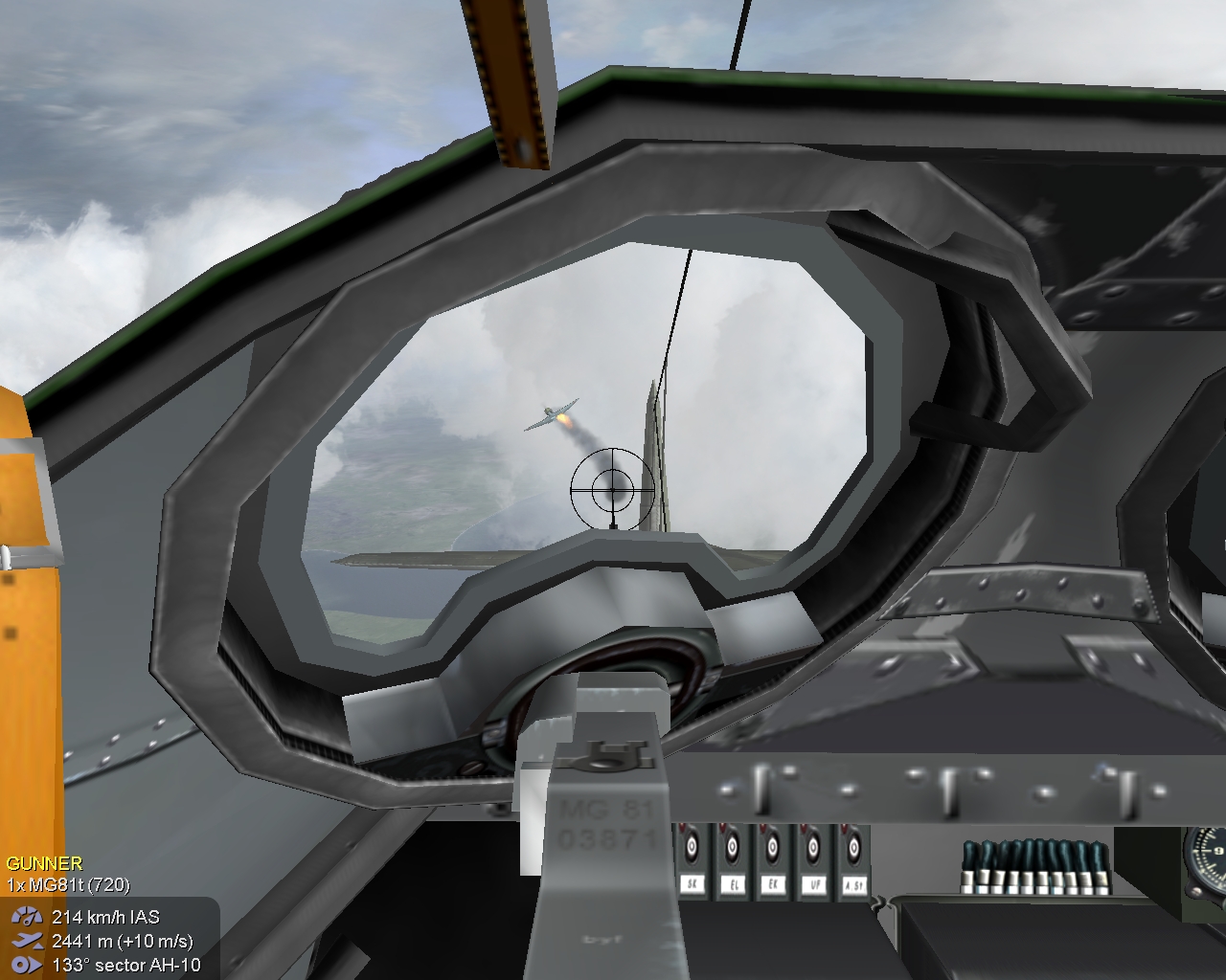 В миссии использован мод "Комманд энд контрол" - у вас на борту штурман, указывающий место, над целью необходимо провести высотную разведку (обычный проход), после вылета погода портится, в районе цели гроза. У меня дополнительно стоит мод турбулентности - очень впечатляет. Вылет реально выматывает, час пилотировать даже виртуальный самолет в облаках и тряске, с небольшим ветром - пытка. Рекомендую пройти миссию на автопилоте, и возможно, стоит поставить время дневное. Кстати, автопилоту цель удается поразить.