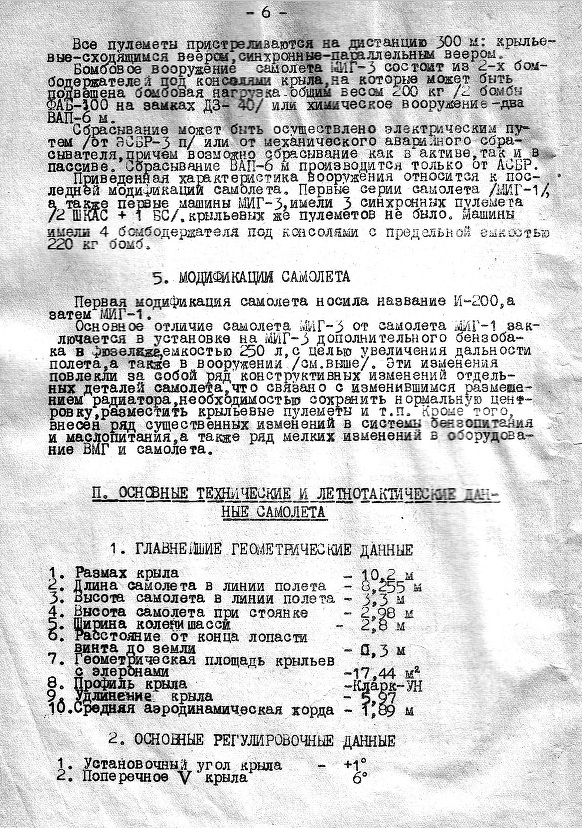 Замечания по ФМ МиГов. Миг-3 ранний имел длину 8.255, 8.155 было у И-200 и МиГ-1. Кстати, нужна будет ФМ для И-200. Вот нарыл временное техописание И-200 от ноября 1940, это уже МиГ-1. У него центровка САХ 26%. Так же расходятся данные по маслу и топливу. |