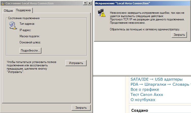 На одном, старом у сына сетевая карта PCI 10/100M 32Bit FNC-0109TX, у меня материнка Asus P5E64 WS Evolution <Socket775 <X48> 4xPCI-E+2xGbLAN+1394 SATA RAID U133 ATX 4DDR-III<PC3-12800>> С двумя сетевыми картам, одна собственно в интернет подключена, а другую решил использовать для подсоединения с компом сына. Подключением занимался сын, делал всё как написано тут : http://nosorog.jino-net.ru/notes/17 Но чего-то не катит. Короче вот он пишет: "IP и маска подсети настроены, но в меню «состояние» подключения они не отображаются. При нажатии на кнопку «исправить» выдаётся ошибка."