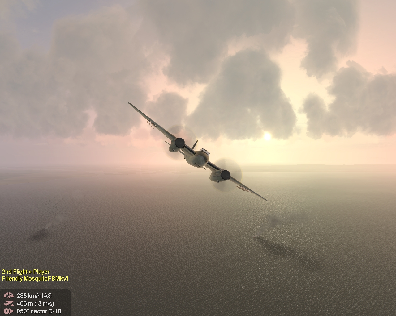 В миссии использован мод "Комманд энд контрол" - у вас на борту штурман, указывающий место, над целью необходимо провести высотную разведку (обычный проход), после вылета погода портится, в районе цели гроза. У меня дополнительно стоит мод турбулентности - очень впечатляет. Вылет реально выматывает, час пилотировать даже виртуальный самолет в облаках и тряске, с небольшим ветром - пытка. Рекомендую пройти миссию на автопилоте, и возможно, стоит поставить время дневное. Кстати, автопилоту цель удается поразить.
