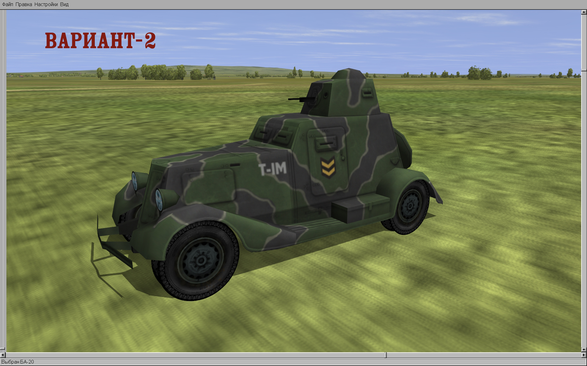В архиве три варианта, которые показаны на скриншотах. В архиве выбрать папку варианта, из неё взять папку "ВА_20" и положить её по адресу: MODS/Files/3DO/Cars Жаль, что в игре нет возможности "одевать" объекты в индивидуальные скины, как можно с самолётами.) |