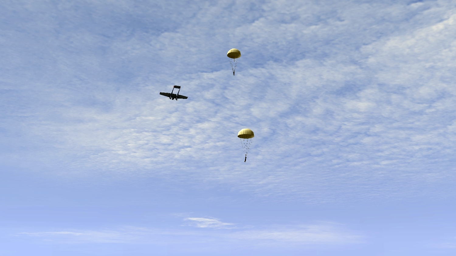 Тогда надо глубже в код класса смотреть. Нет ли в классах чего нибудь со словом "Bailout"? Парашютистами можно управлять через процедуры класса. Еще вариант просто все перепроверить в названиях хуков и пилотов - возможно просто опечатка. И посмотреть на самолет после прыжка - все кабины пустые или где то фигурка осталась?