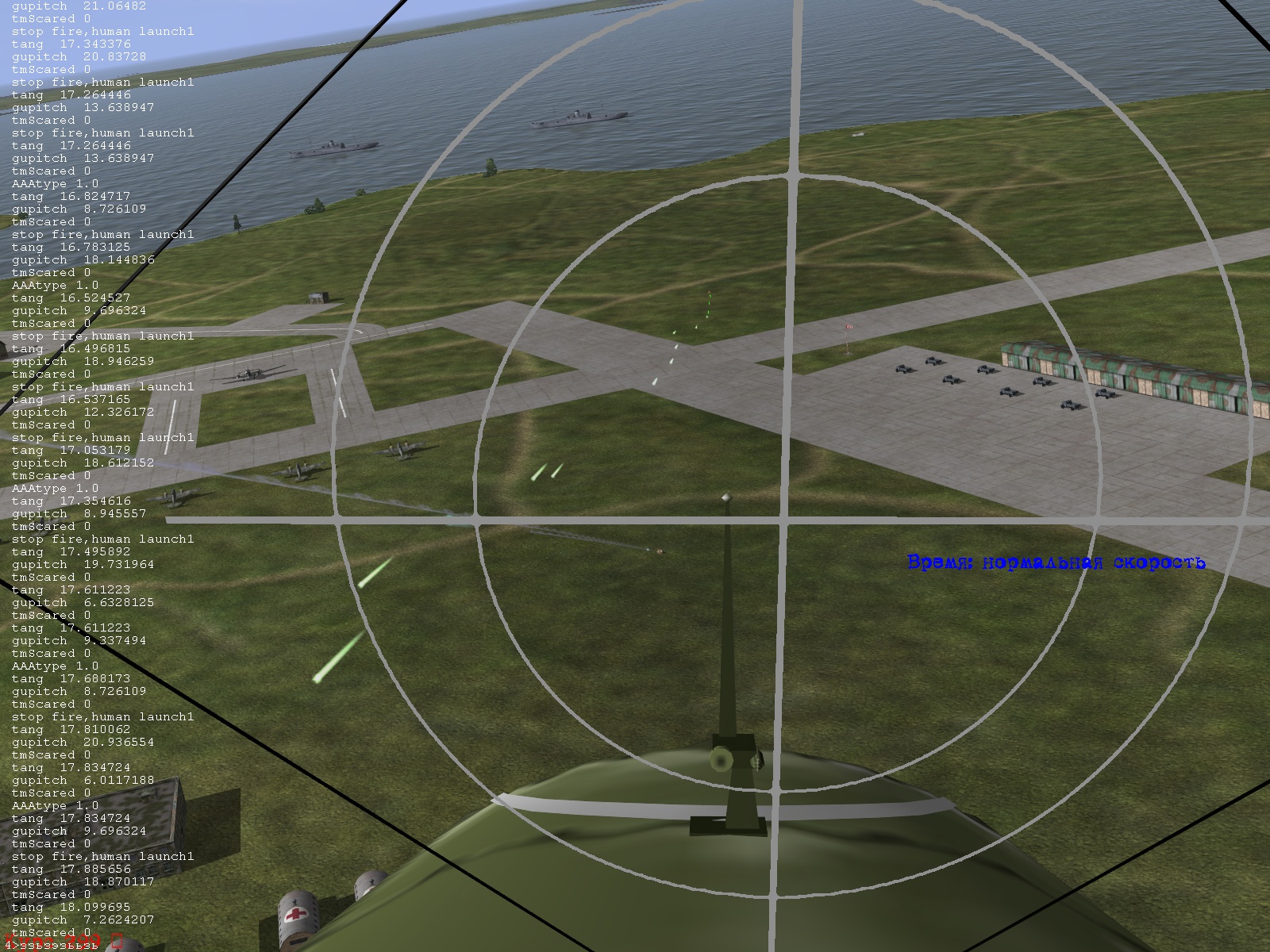 Вот было бы неплохо привязать вероятность ко времени "воздействия", а не каждый такт рассчитывать по новой. Не то чтобы оно сильно важно...но вообще когда поведение элемента игровой механики сильно зависит от производительности компа на котором игра запущена это неправильно в общем-то . Хотя, конечно, и так нормально. А насчет моделей обслуги я поищу, включаются-то они конечно в конфиге, но на самом деле там просто скрываются-показываются элементы меша, и вполне может быть что сделать это в твоем коде несложно. Зависит только от того, насколько сложно из логического объекта "зенитка" получить сцылку на объект меш, если также как в самолетах - то проблем быть не должно.