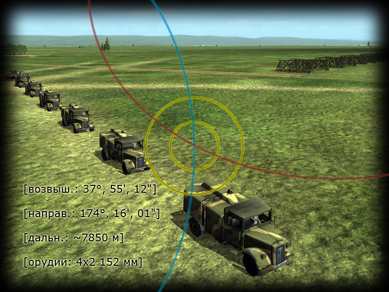- создание нового типа юнита; - новые математические модели для наземки и моря; - за что именно ты уцепился говоря об артиллерии? Из предположений: -- У.Ф.Е. не будет отдельным новым видом. Его добавим в air.ini, как самолёт («самоплав» -- в нашем представлении). -- Стрельба будет вестись точно так же, но запретим уже стрелять сквозь холмы по невидимым глазами объектам. Добавим к дуге полёта боеприпаса (к части окружности) свойство «изгибаемости» в гиперболу или параболу (задействуется посредством считывания данных о возвышении ствола). Все «дуги» полётов снарядов, соответственно градусам возвышения ствола и типам боеприпасов, можно рассчитать однажды и вывести в отдельный набор данных. Одним файлом будет лежать в папке ".../MOD/UFE/dugi.dat". Всё, чем будет руководствоваться наводчик (штурман по-самолётному) -- пеленгом на цель (управление сносом +/-), возвышением ствола (возвышение прицела +/-), геозависимой чертой горизонта в прицеле, крестиками сведения задействованных башен (увеличить-уменьшить дистанцию +/-), разводка стволов в башнях для одновременного (единозалпового) ведения огня из одной башни на разную дальность (высота +/-). Текущая дальность выстрела (залпа) приближённо (средневзвешенно) будет отображена в прицеле: [возвыш.: 37°, 55', 12"] [направ.: 174°, 16', 01"] - по компасу; [дальн.: ~7850 м.] средневзвешенная; [орудий: 4х2 152 мм] - количество задействованного вооружения (зависимо от положения корабля в пространстве и расположения орудий на борту).